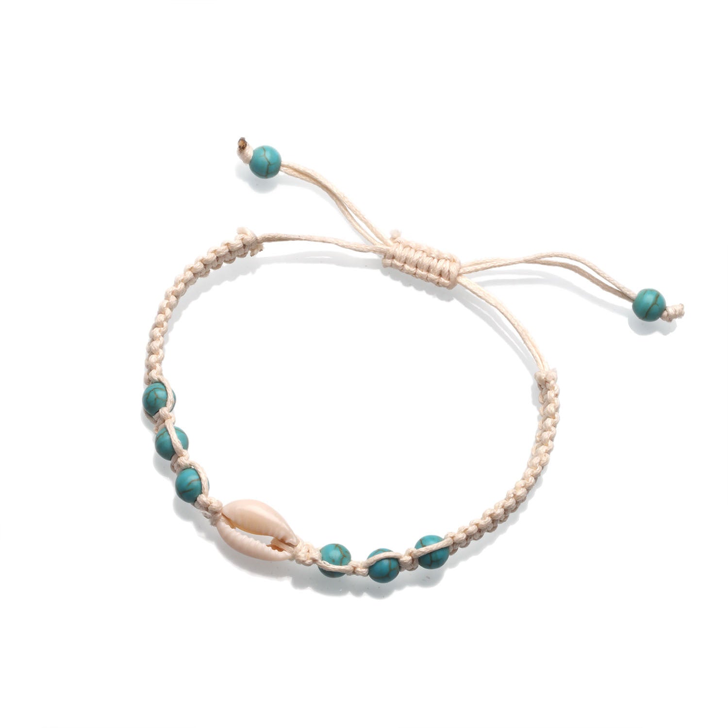 vacation Adjustable white wax cord turquoise stone beads conch shell charm beach boho surf bracelet jewelry supplier