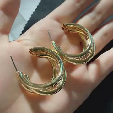 Vintage multi layered geometric triple hoops earrings trendy minimalist gold plated hoop earrings