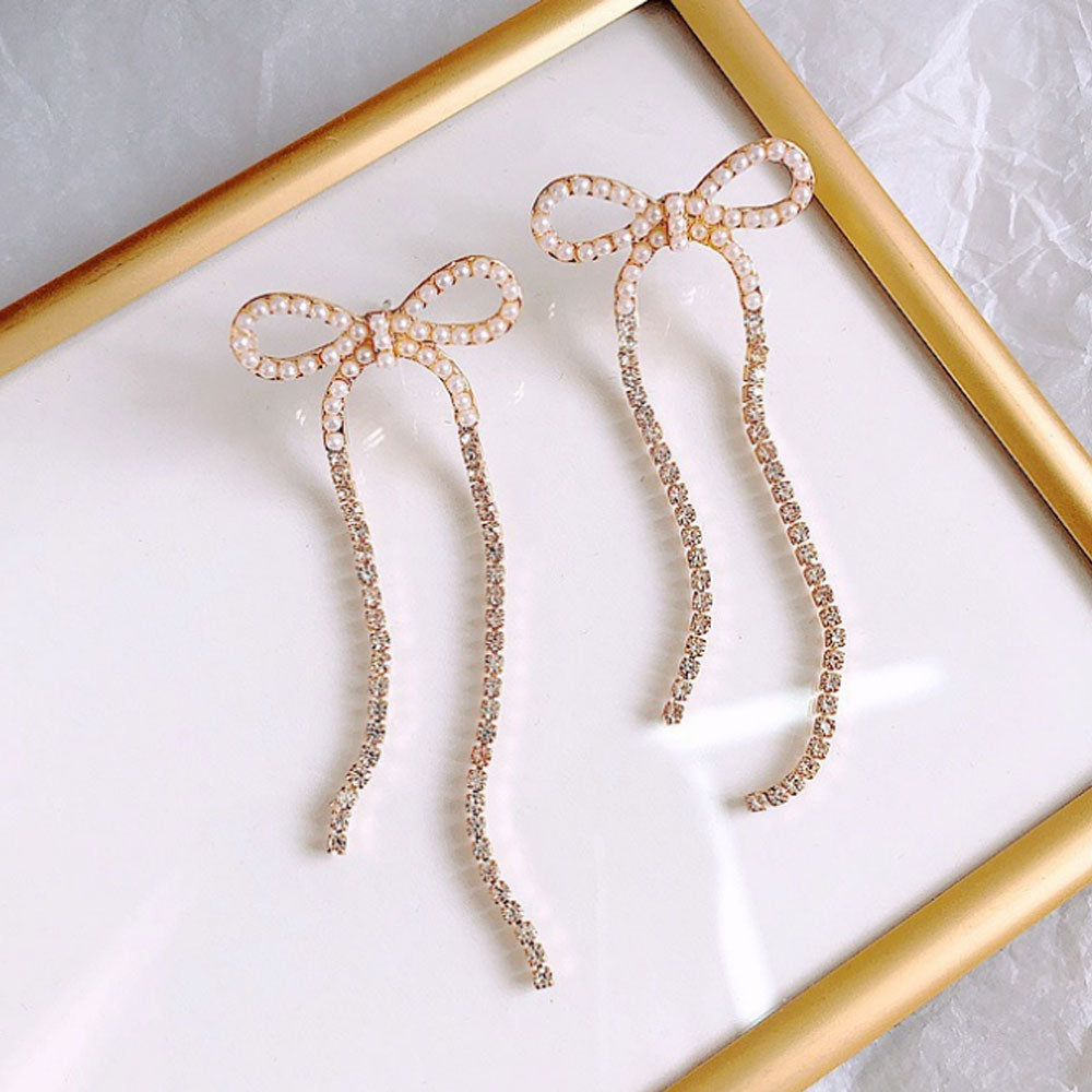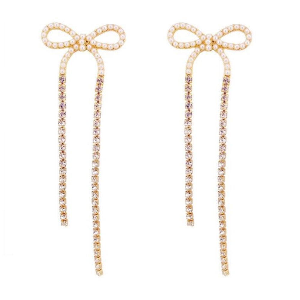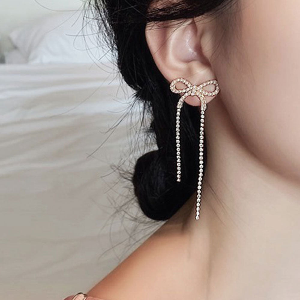 vintage sterling silver pin 925 women cubic zirconia small bowknot bow tie drop long dangle crystal earring