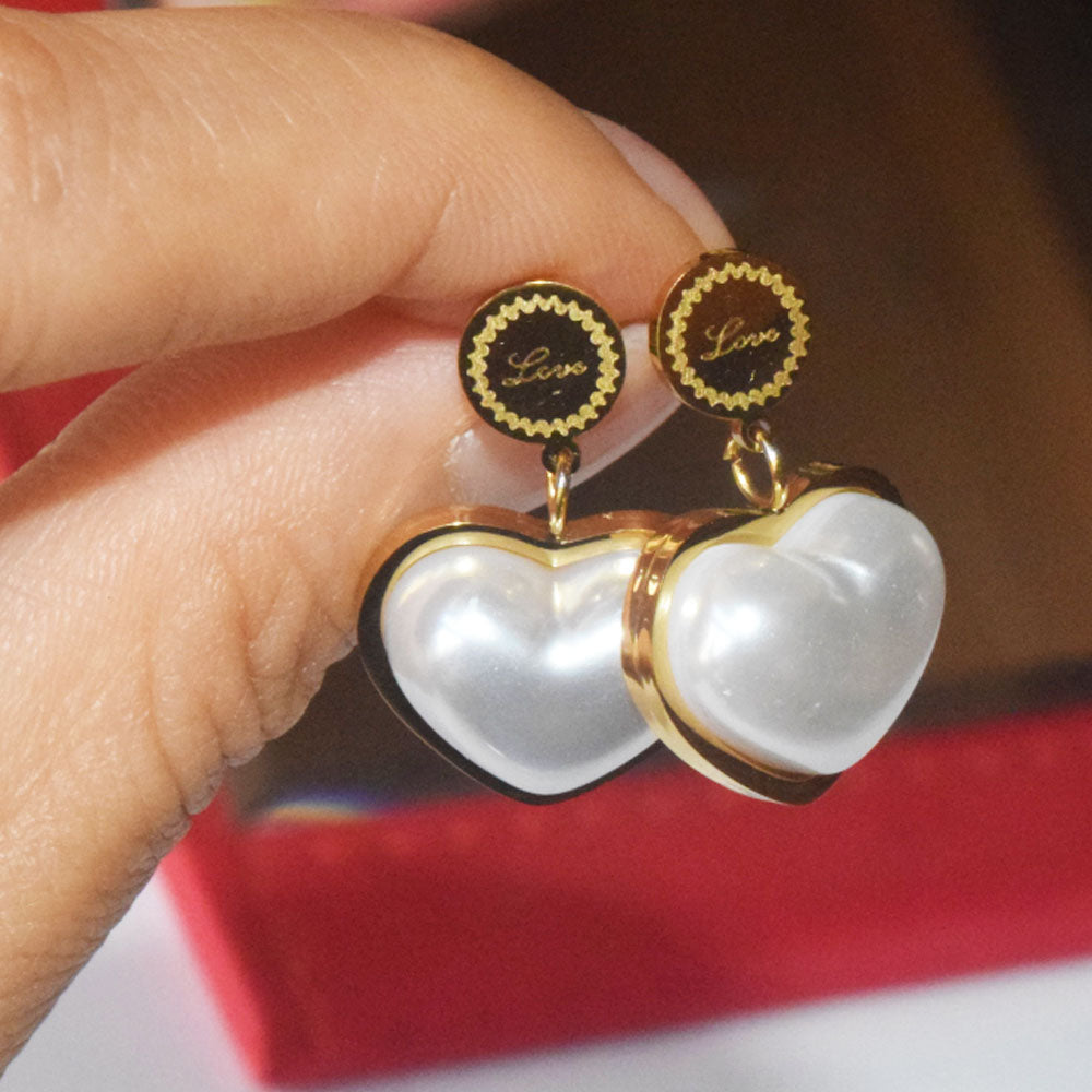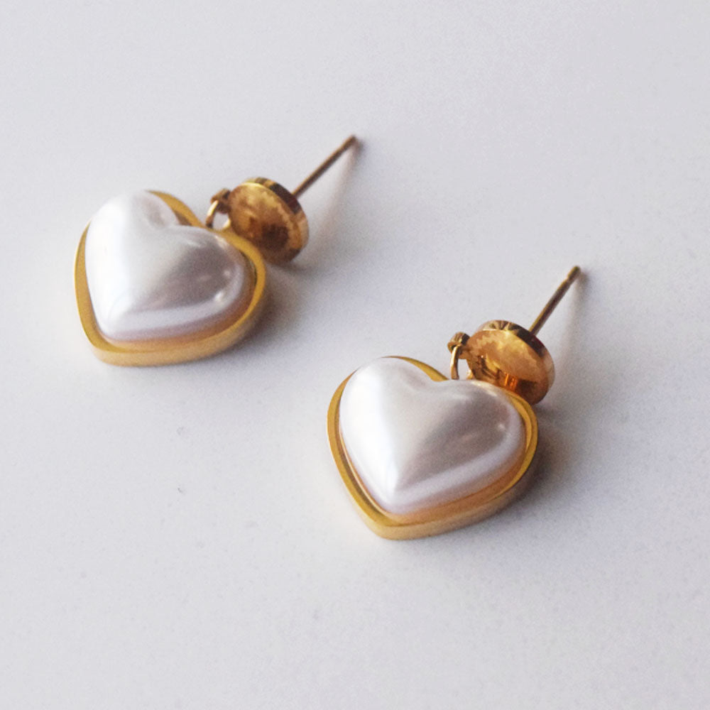 waterproof stainless steel 18k gold plated abs pearl heart stud charm earring popular brands jewelry women