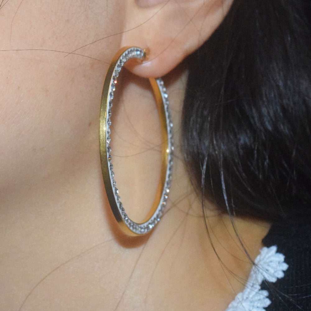 waterproof titanium stainless steel 18k gold plated big circle hoop diamond zircon beads bezel paving loops earring jewelry