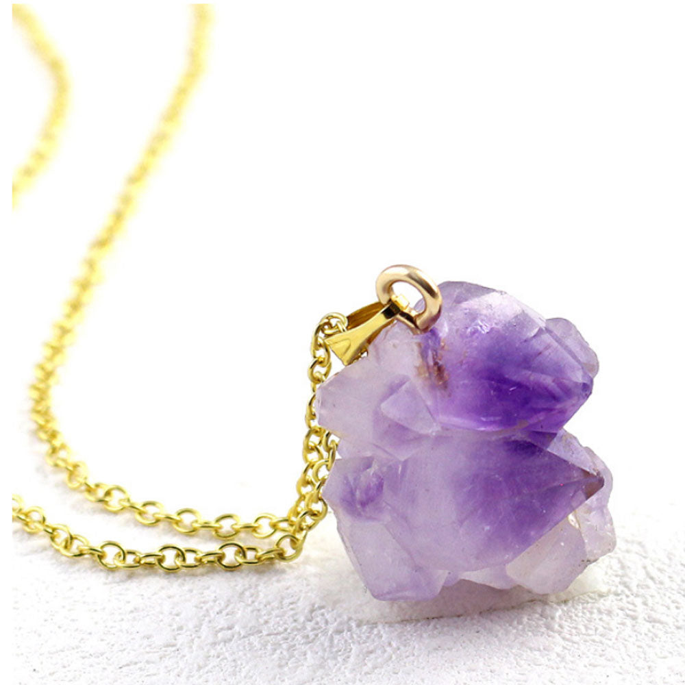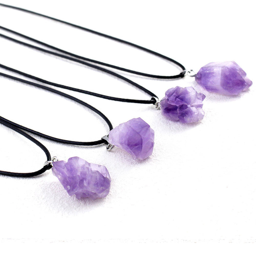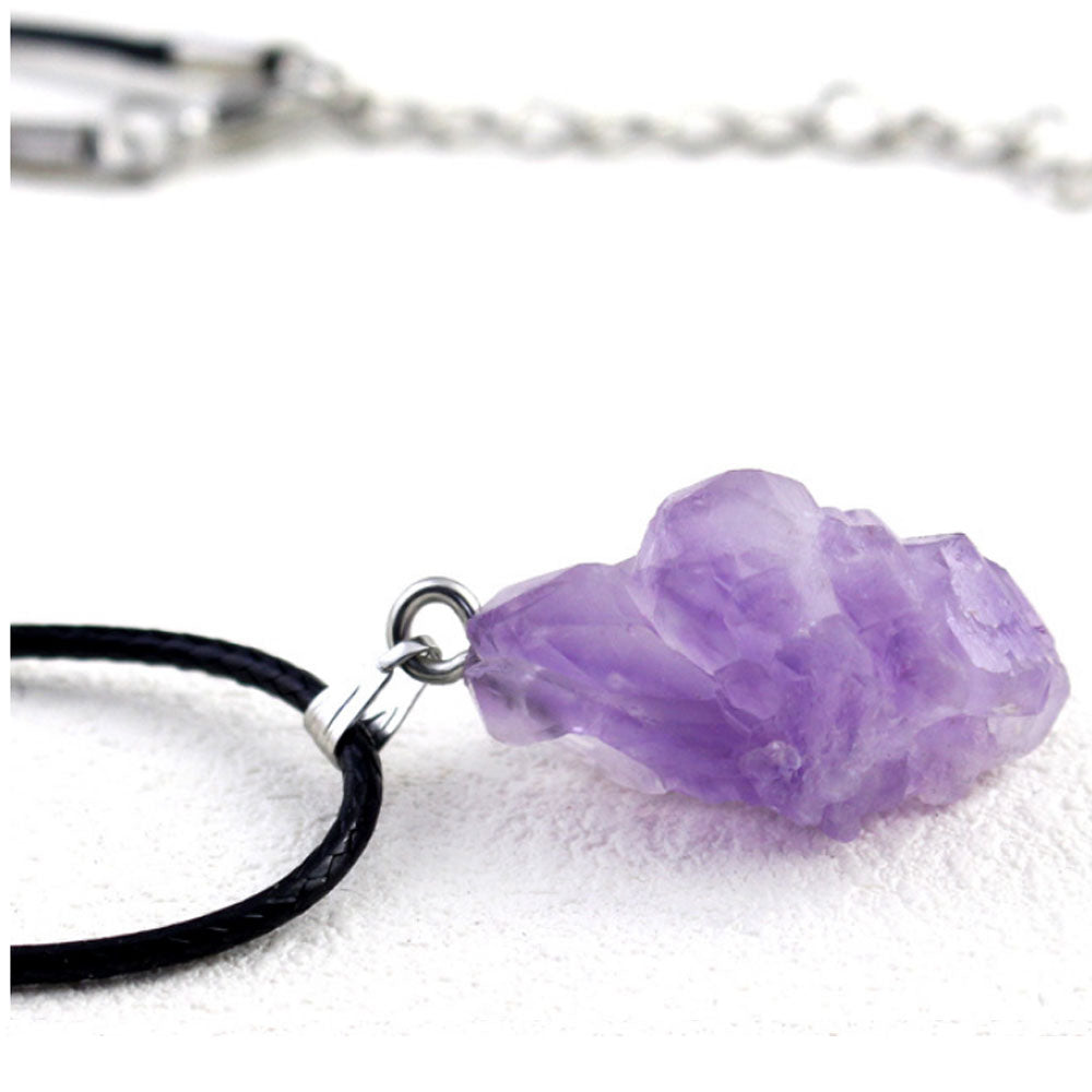 wax cord and alloy chain semi-precious amethyst pendant crystals healing rough stones necklaces natural