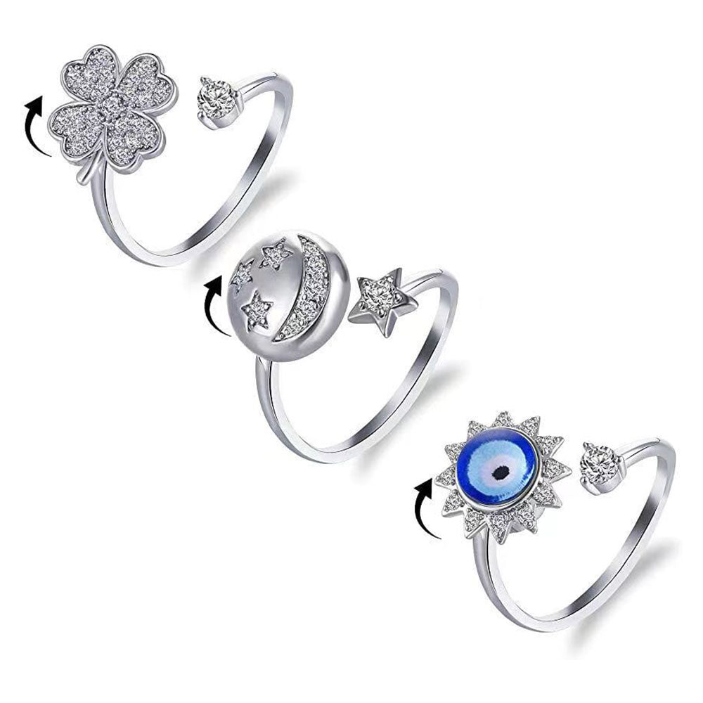 wholesale alloy evil eyes moon star rotatable anxiety fidget relief finger ring jewelry women China Manufacturer Supplier