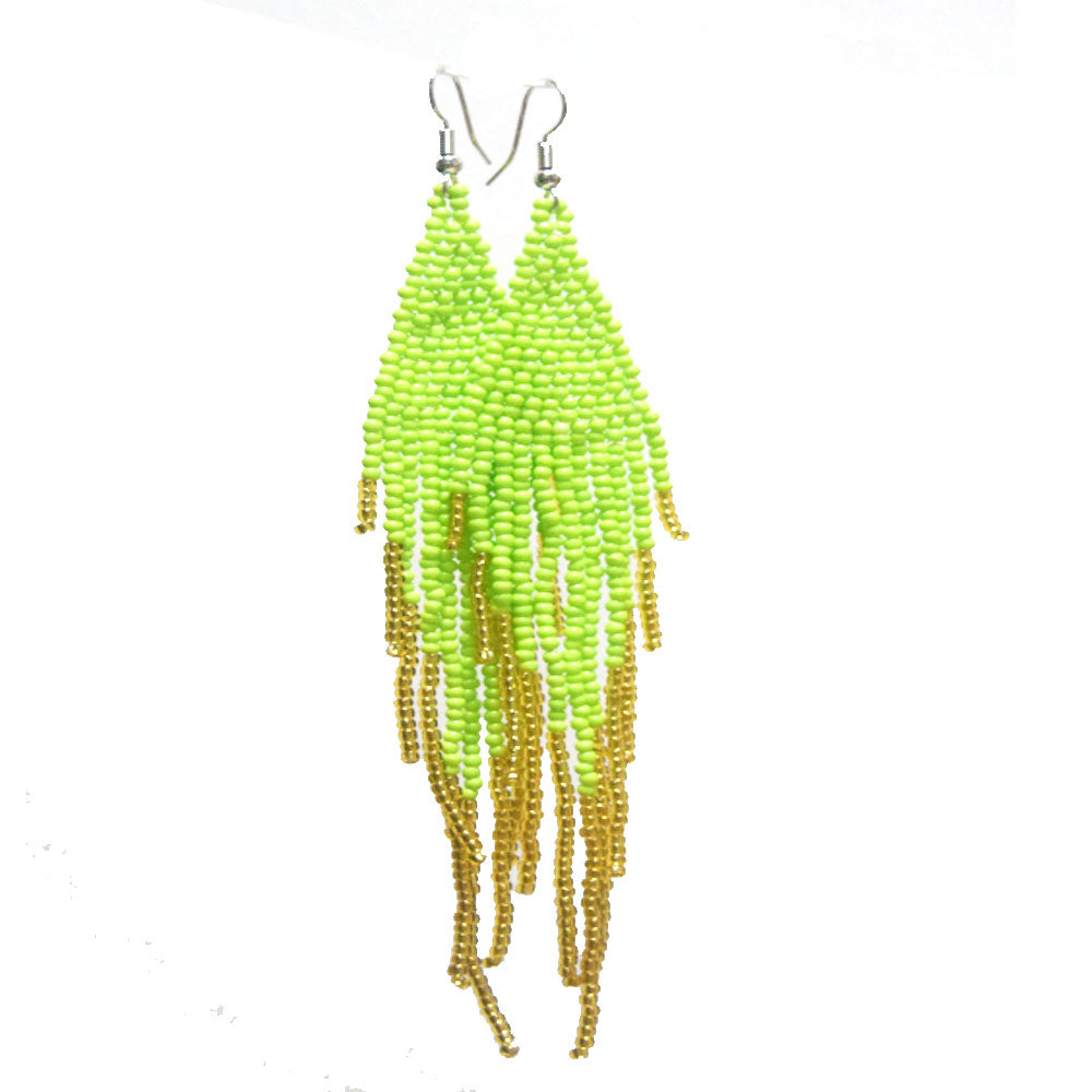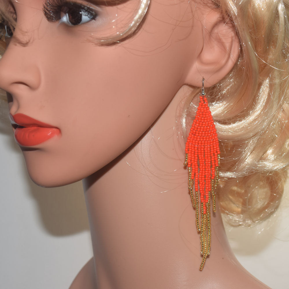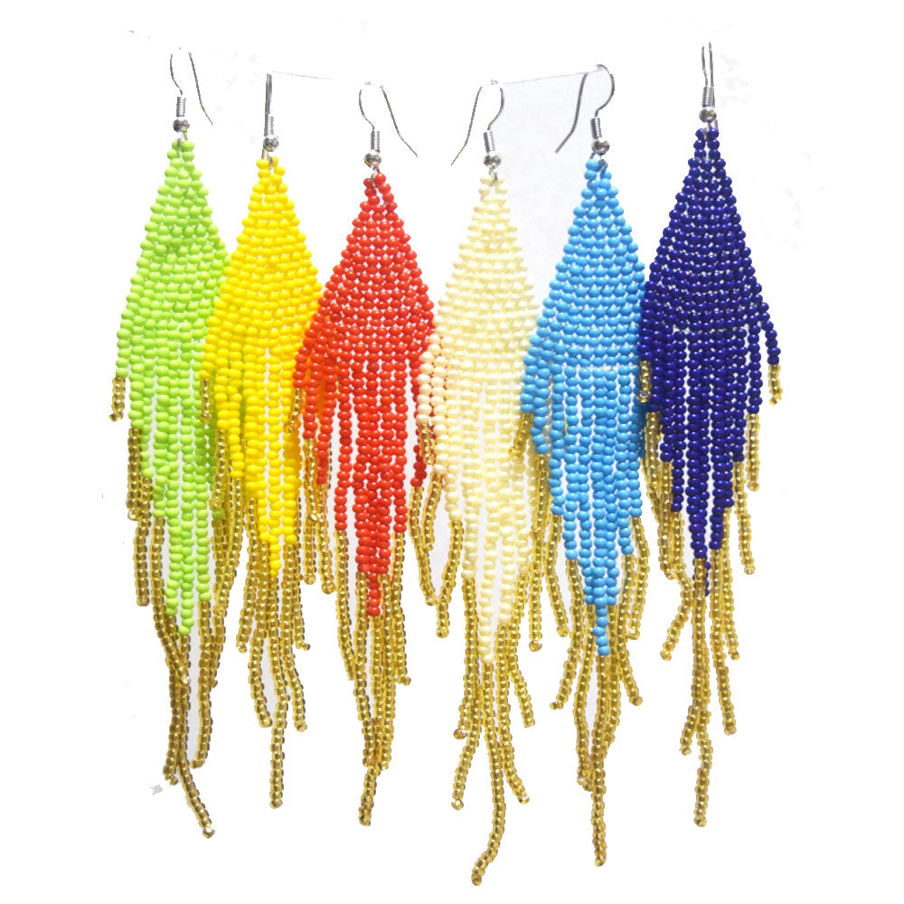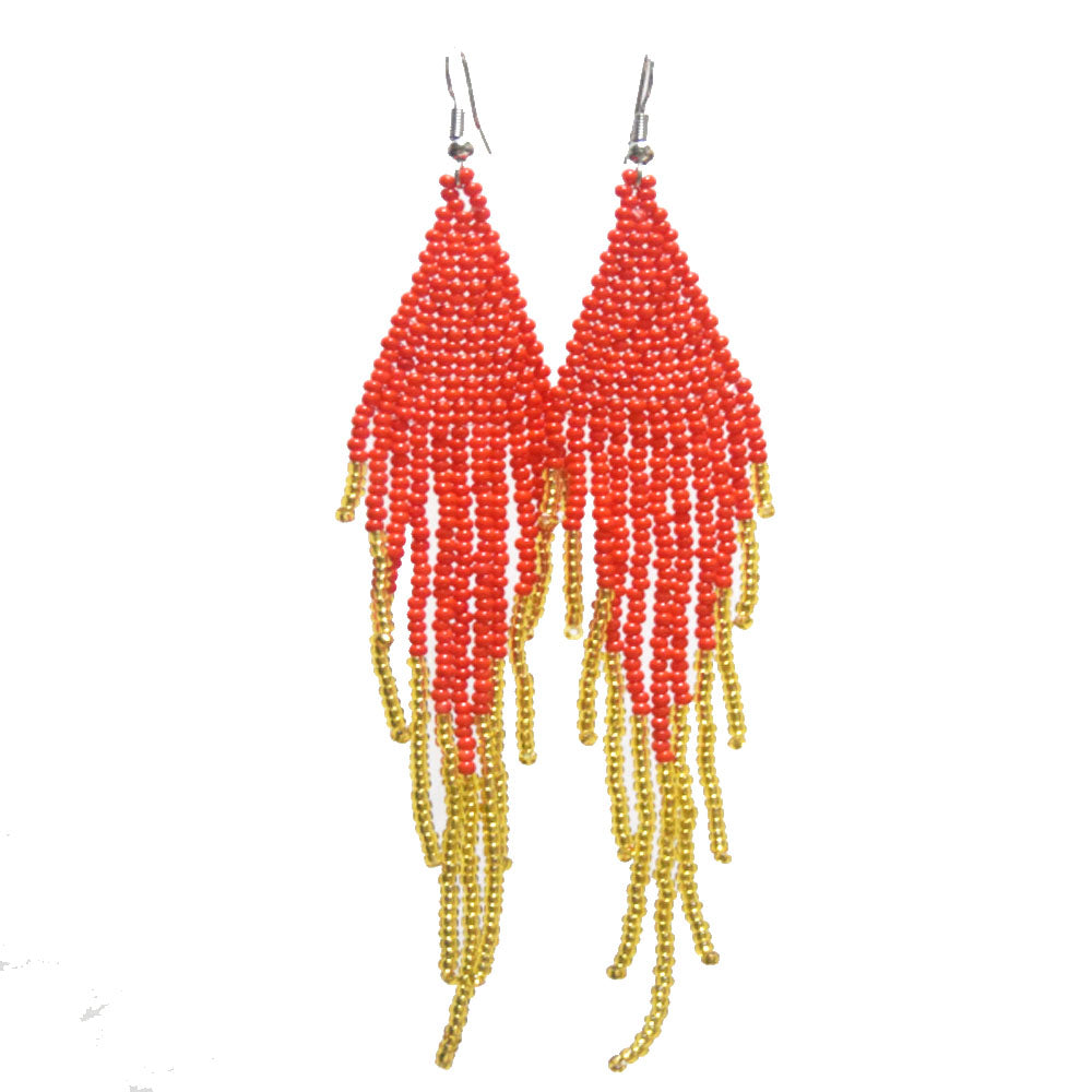 wholesale beads beaded red extra long tassel fringe boho glass seed bead drop dangle earrings for women colorful jewelry