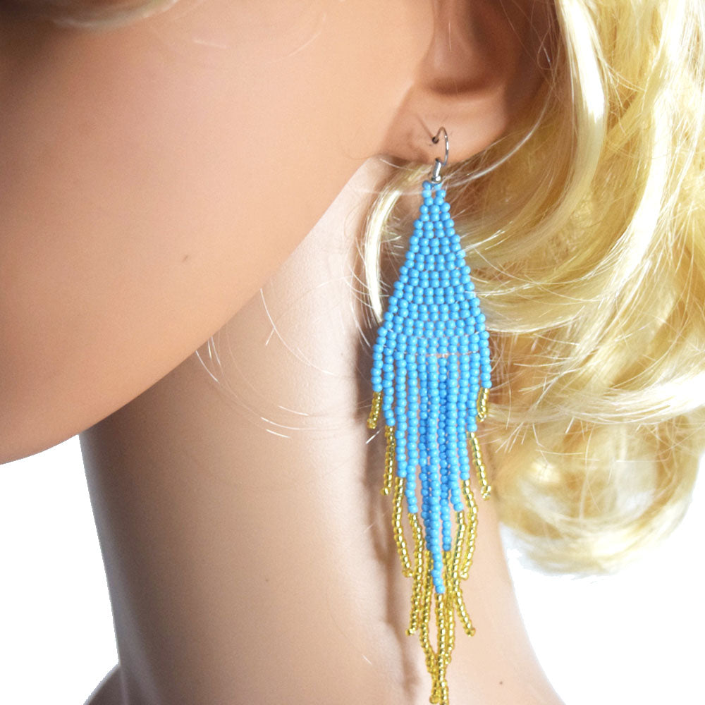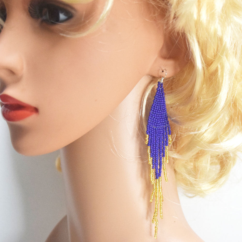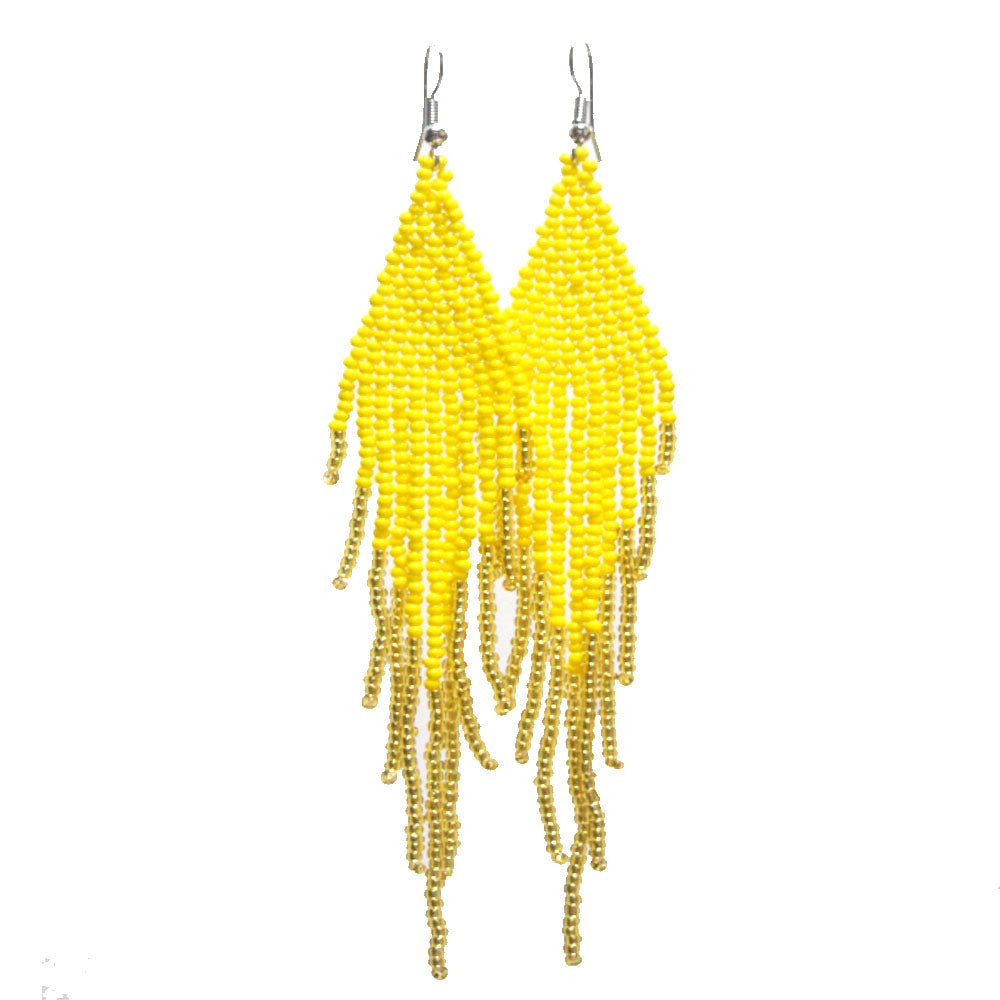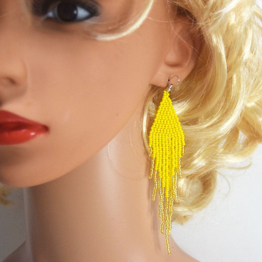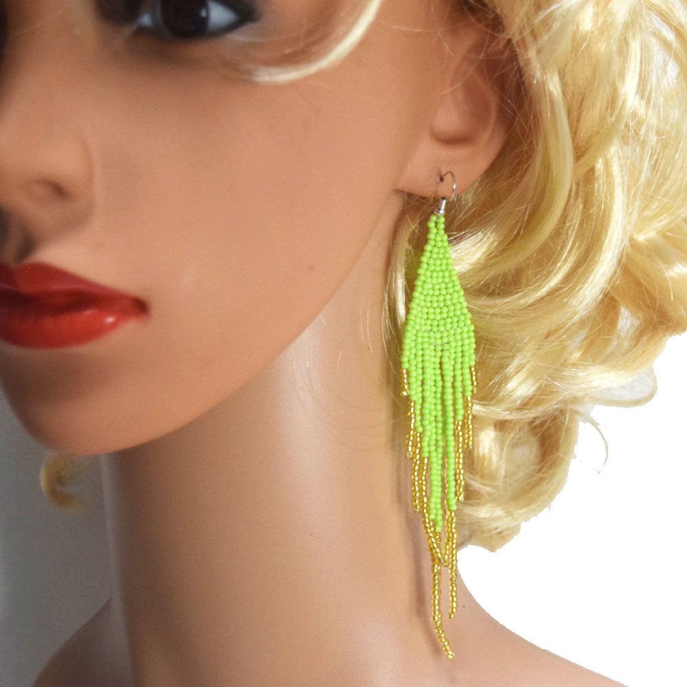 wholesale beads beaded red extra long tassel fringe boho glass seed bead drop dangle earrings for women colorful jewelry