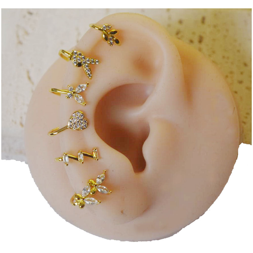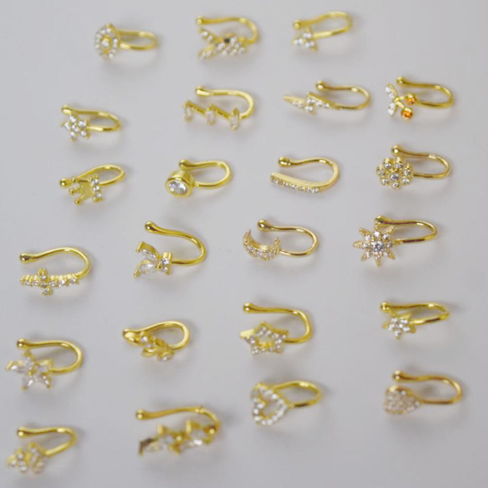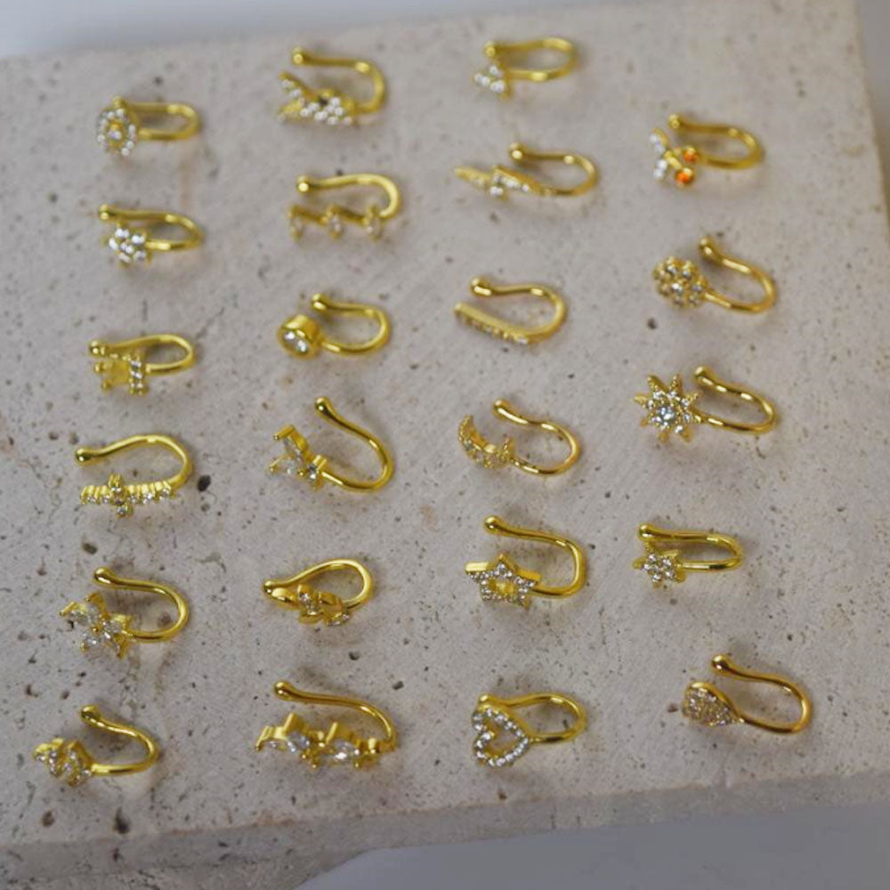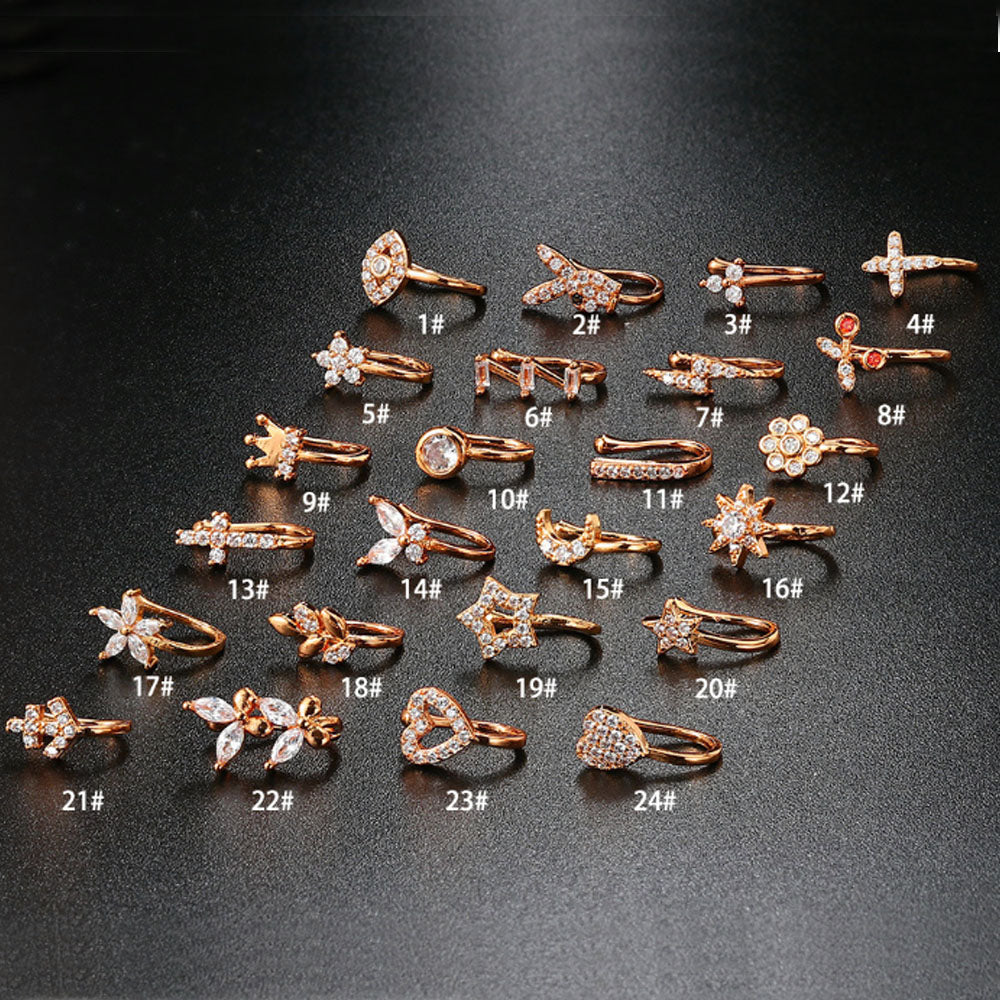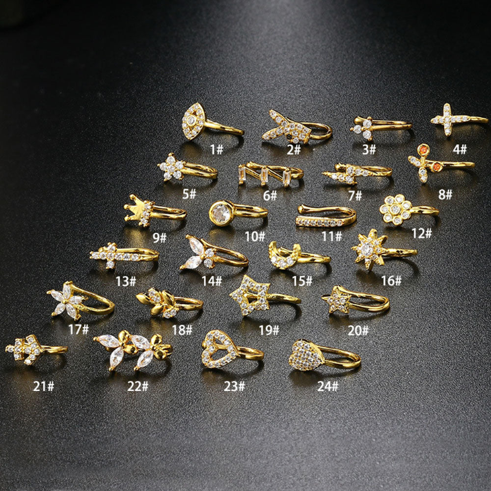 wholesale brass alloy fine gold plated unique nose ear cuff ring hoop heart butterfly heart jewelry unisex men and women