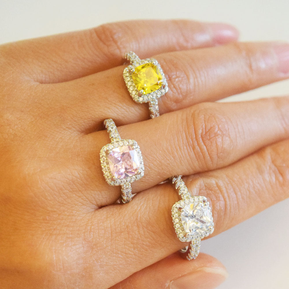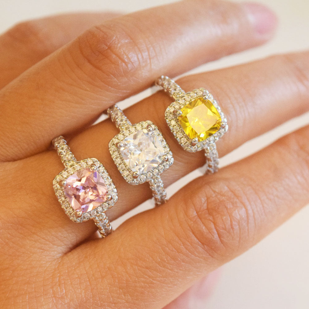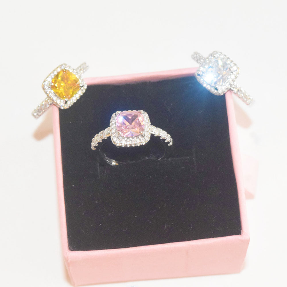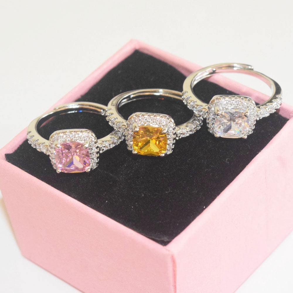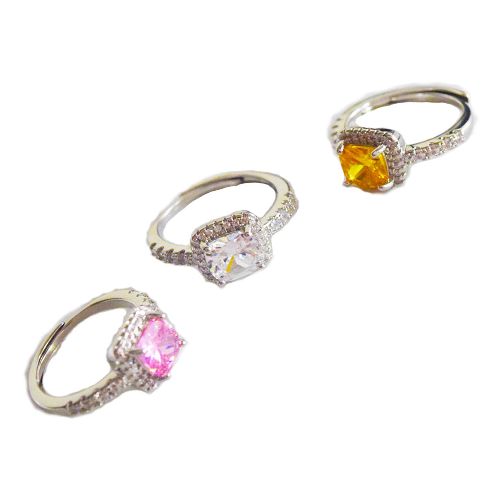 wholesale bulk copper artificial sterns zircon square diamond fishing lure finger ring wedding jewellery resizable women