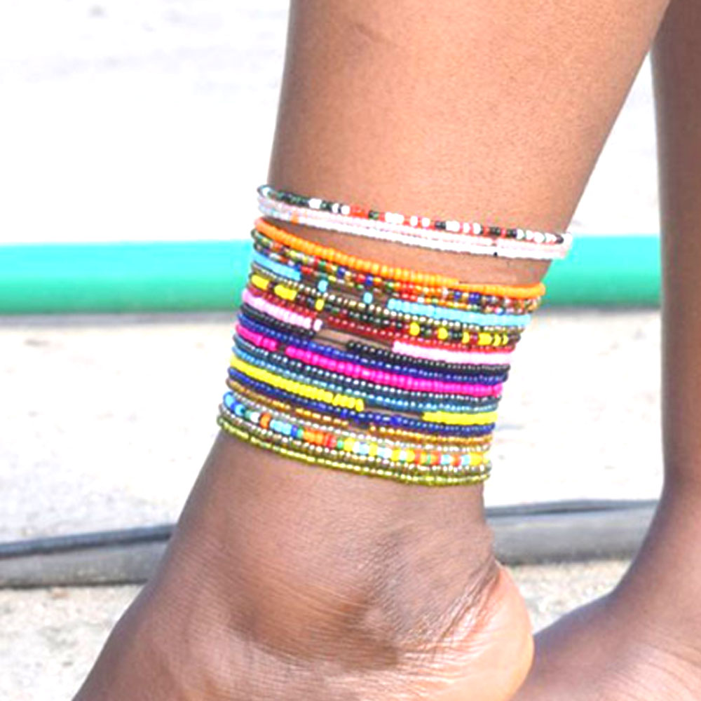 wholesale elastic cord glass bead african beaded anklets jewelry