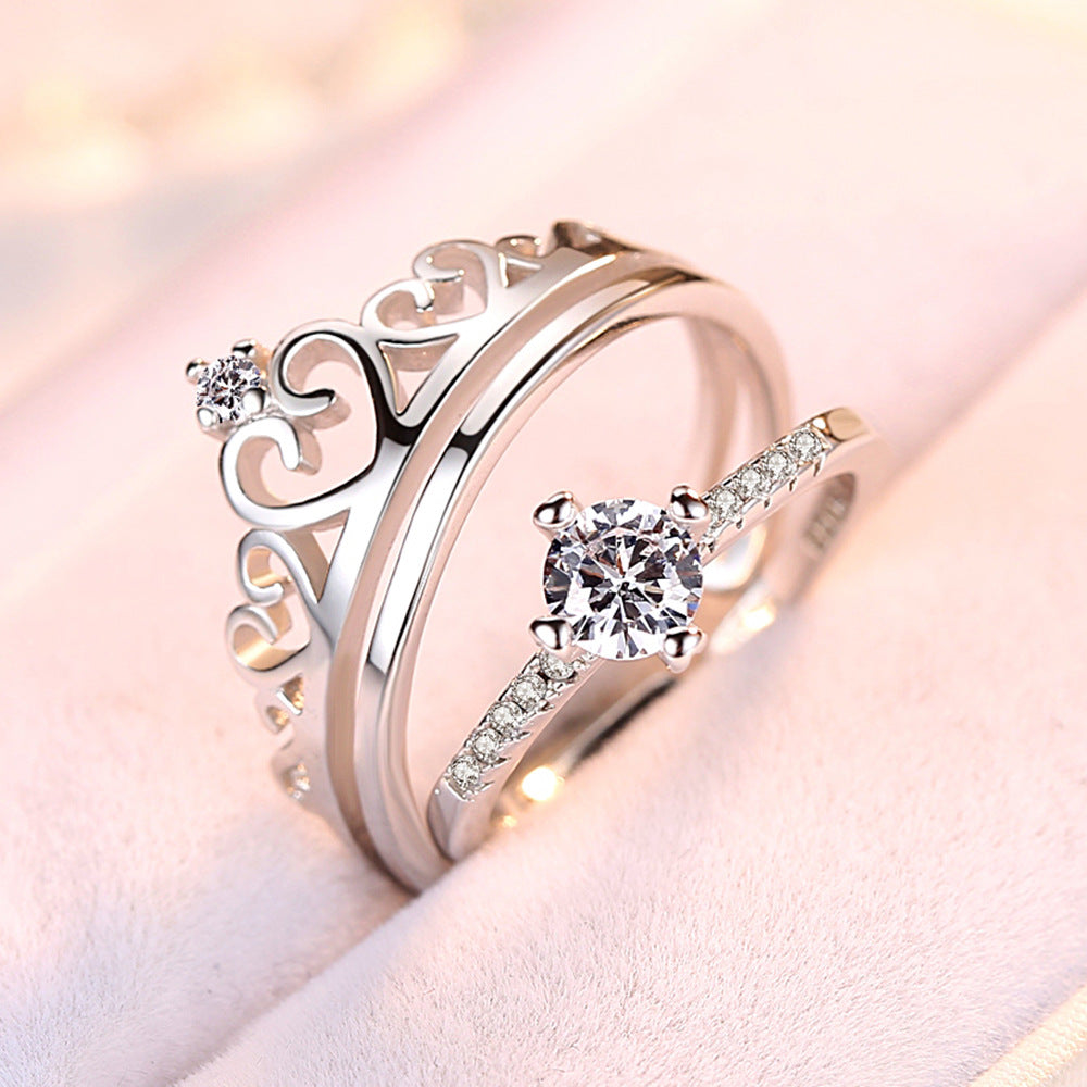 wholesale fashion copper alloy crown charm couple matching rings set jewelry like you like the first day we met