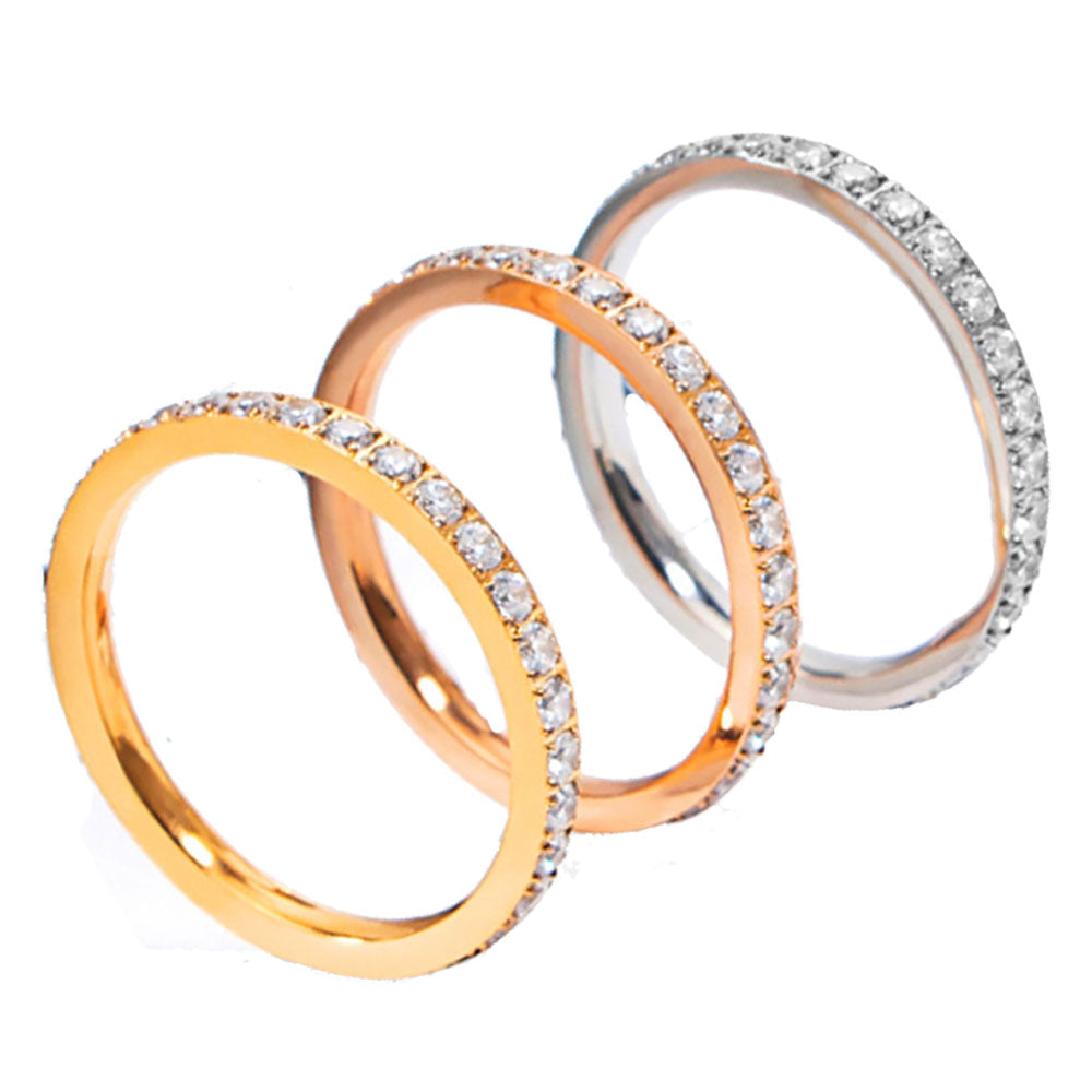 wholesale fashion light luxury stainless steel zircon beads glitter waterproof ring finger rings jewelry unisex china supplier