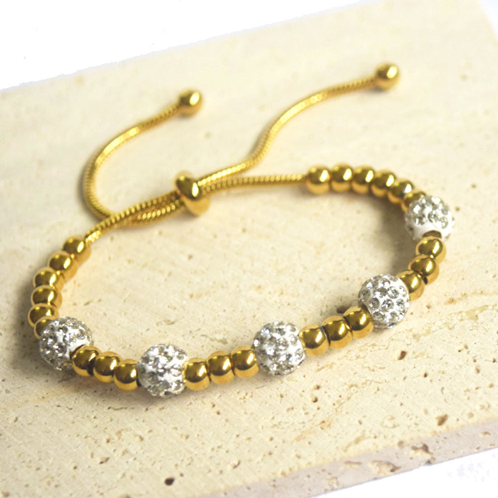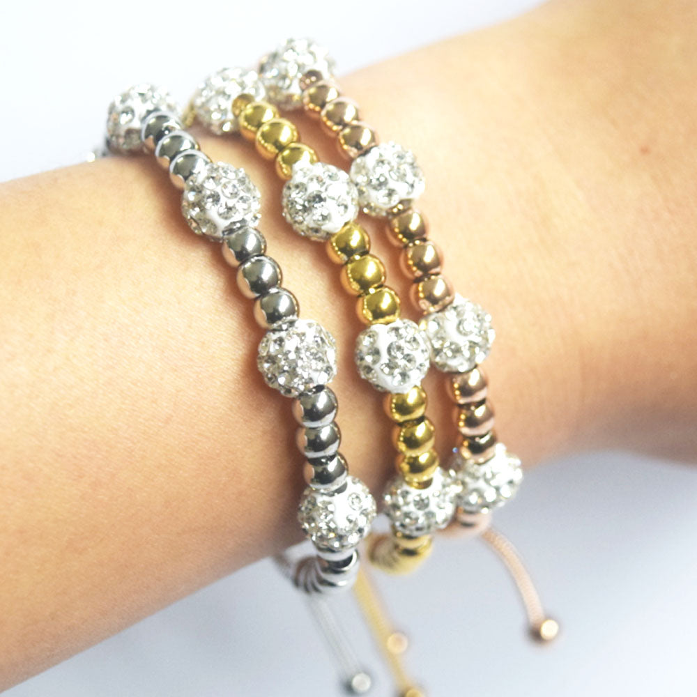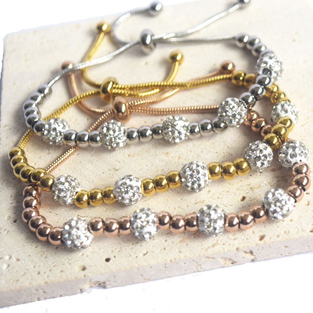 wholesale fashion new design stainless steel beads zircon diamond ball charm bracelet women jewelry China manufacturer supplier
