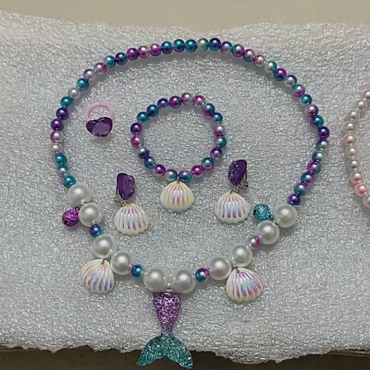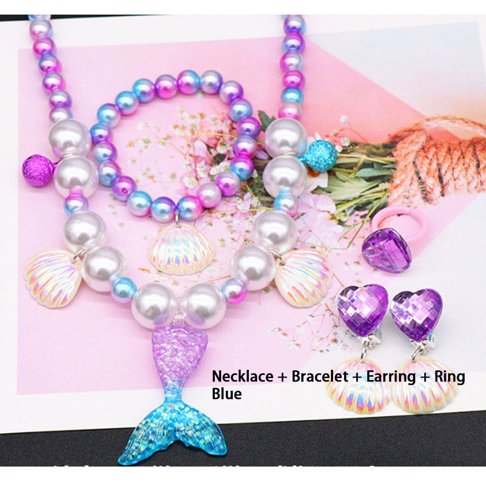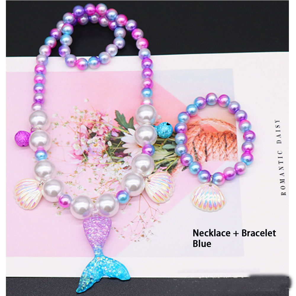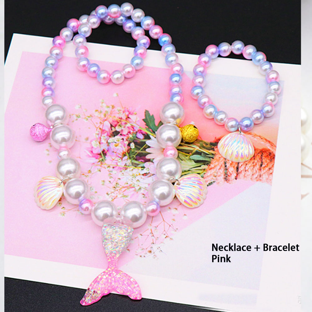 wholesale glass pearl beads pink and blue kids jewelry Girls Christmas Beads mermaid pendant jewelry sets for children