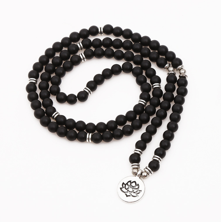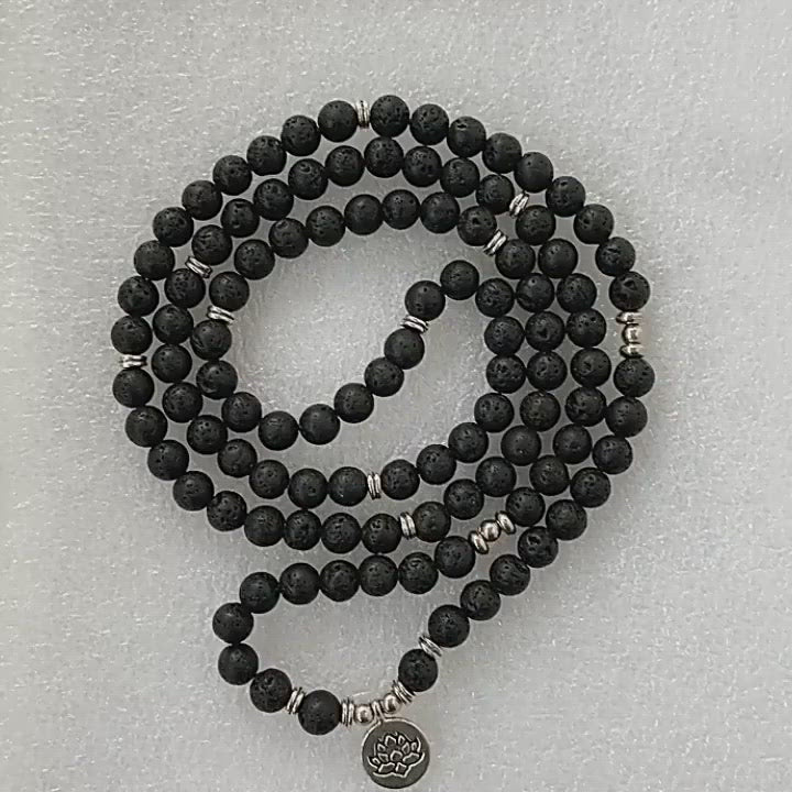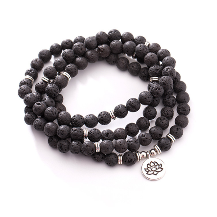 wholesale handmade natural black lava stone beads mala 108 bracelet yoga jewelry