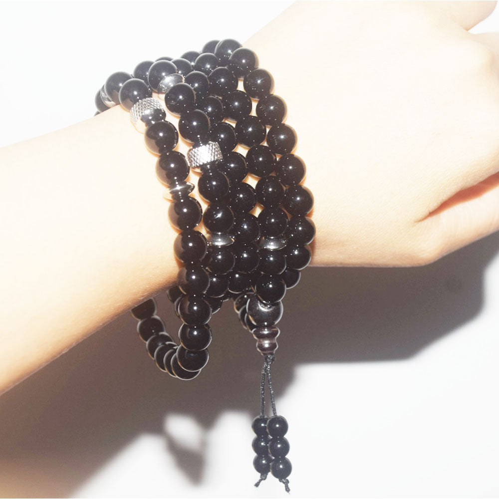 wholesale handmade natural gemstone stone beads 8mm agate black mala 108 yoga prayer meditation jewelry bracelet elastic unisex