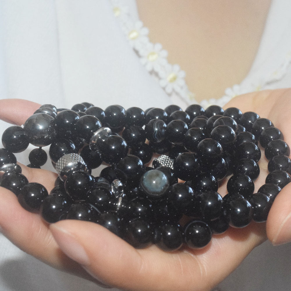 wholesale handmade natural gemstone stone beads 8mm line agate mala 108 yoga prayer meditation jewelry bracelet elastic