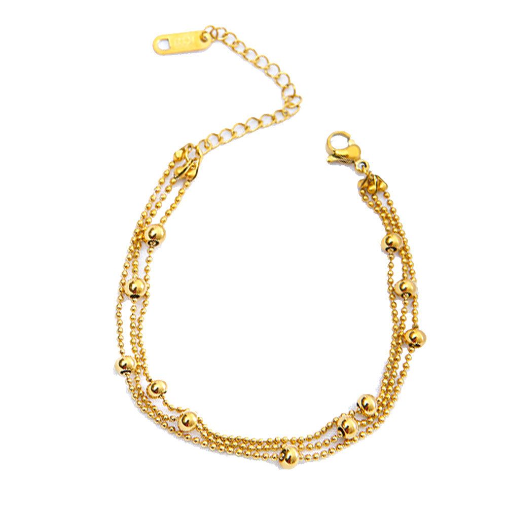 wholesale high quality stainless steel 3 layers beads chain layered bangle bracelet jewelry woman china supplier