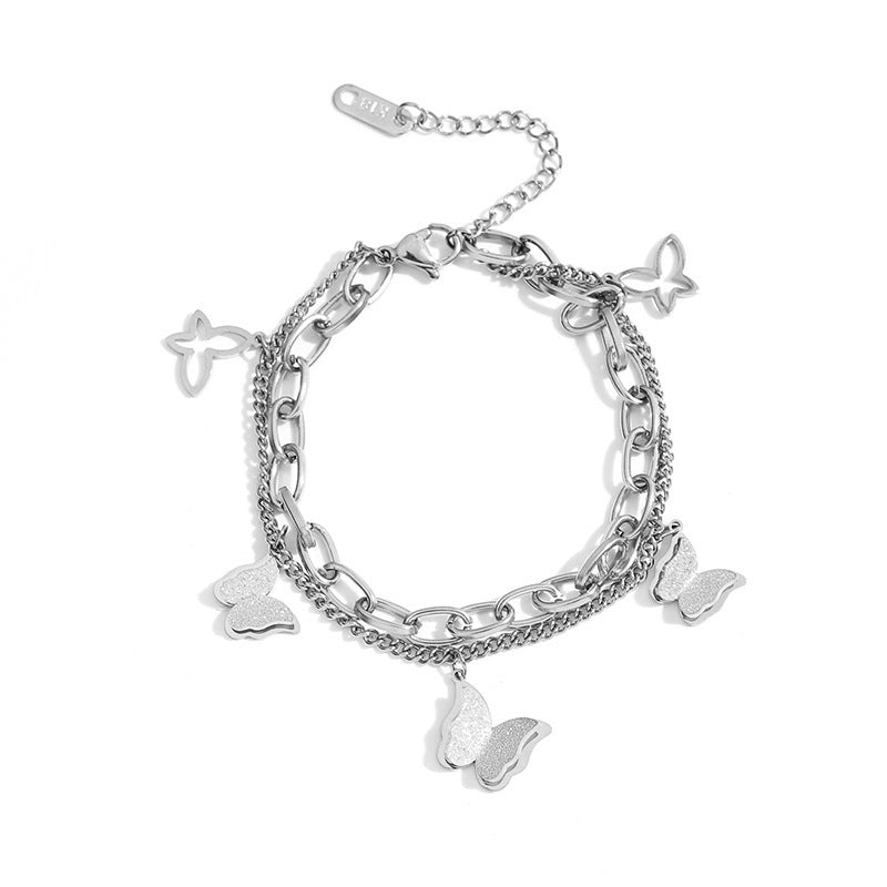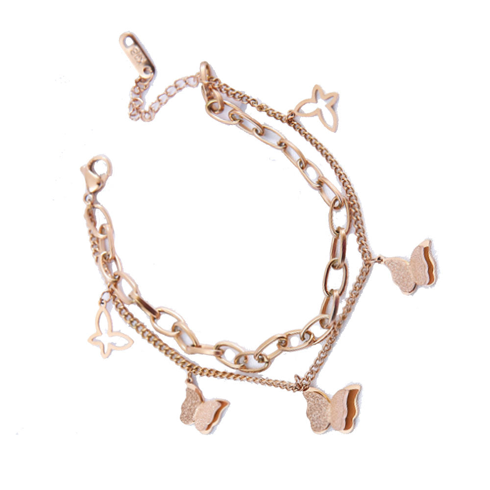 wholesale high quality stainless steel butterfly charm double layers chain bangle bracelet jewelry woman china supplier