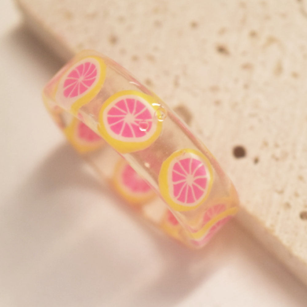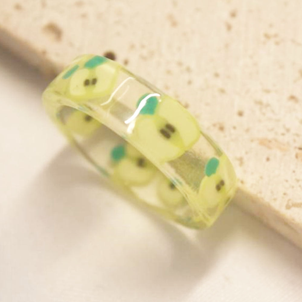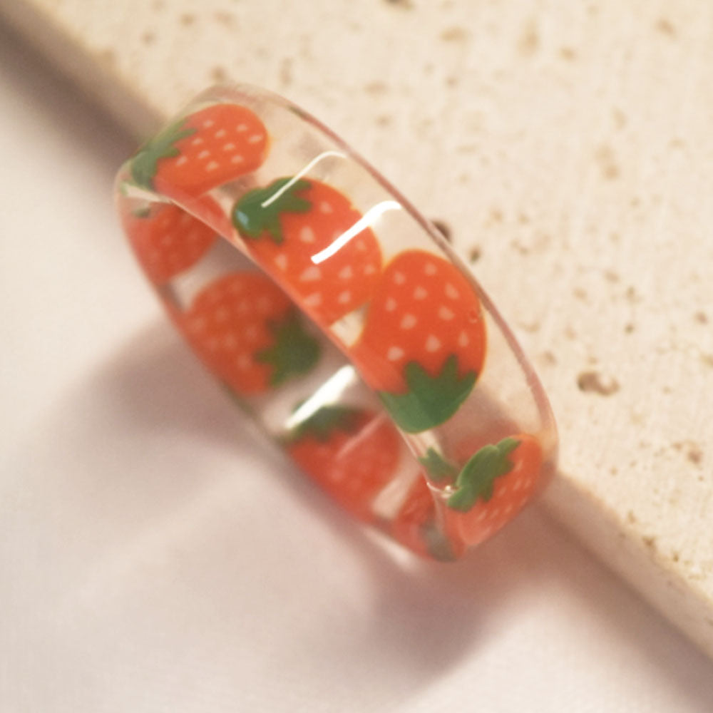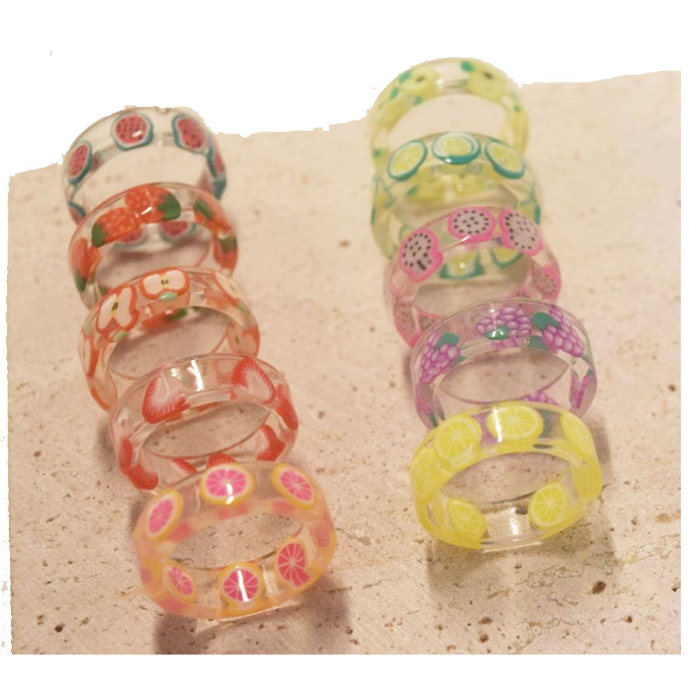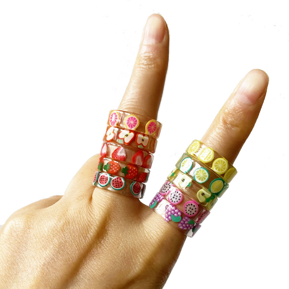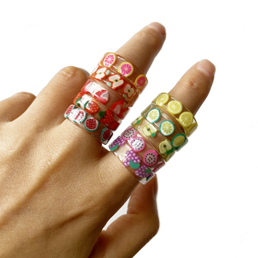 Wholesale Korean style chunky design candy color resin acrylic plastic crystal fruit charm finger rings jewelry ring supplier