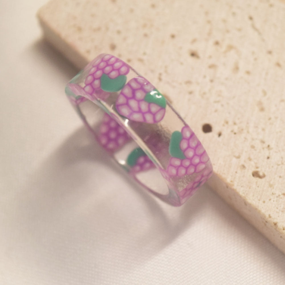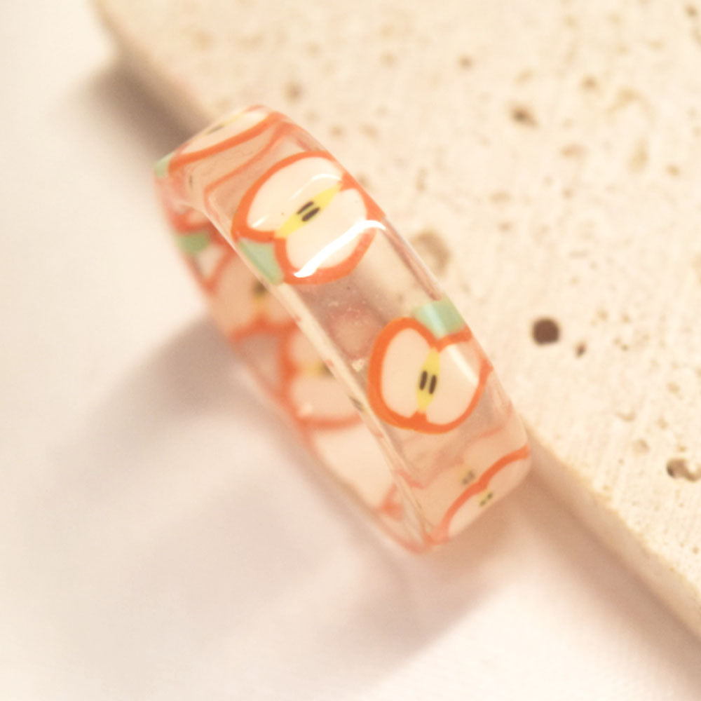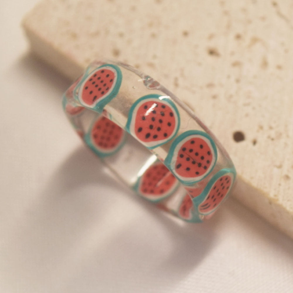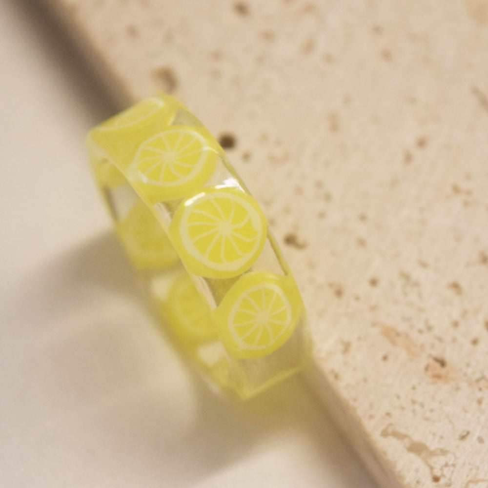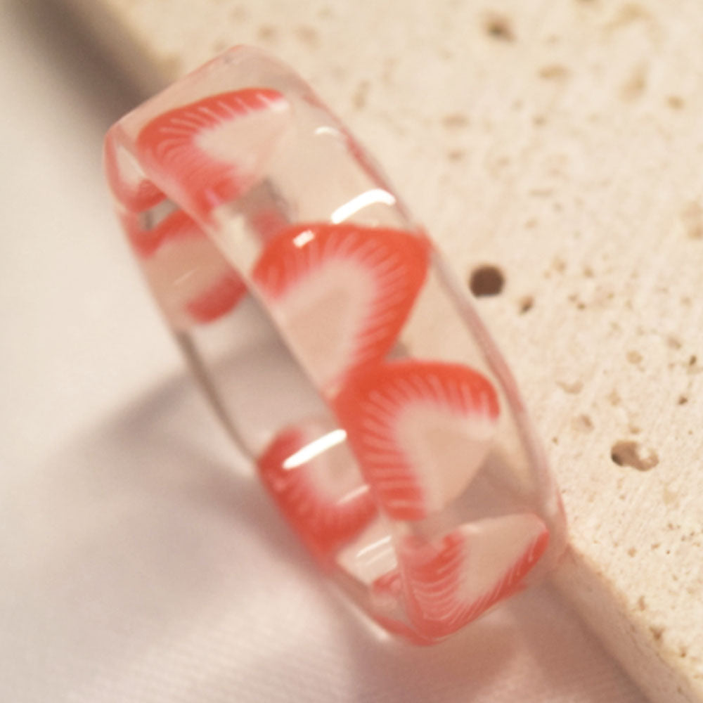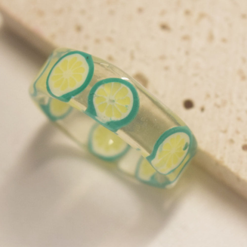 Wholesale Korean style chunky design candy color resin acrylic plastic crystal fruit charm finger rings jewelry ring supplier