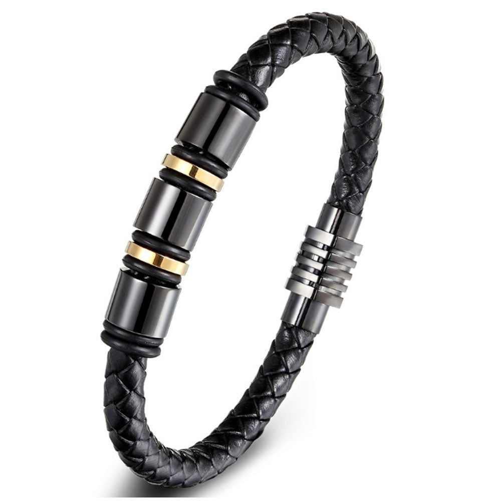 wholesale men's luxury beaded bracelets stainless steel metal parts and genuine leather rope braided for men jewelry
