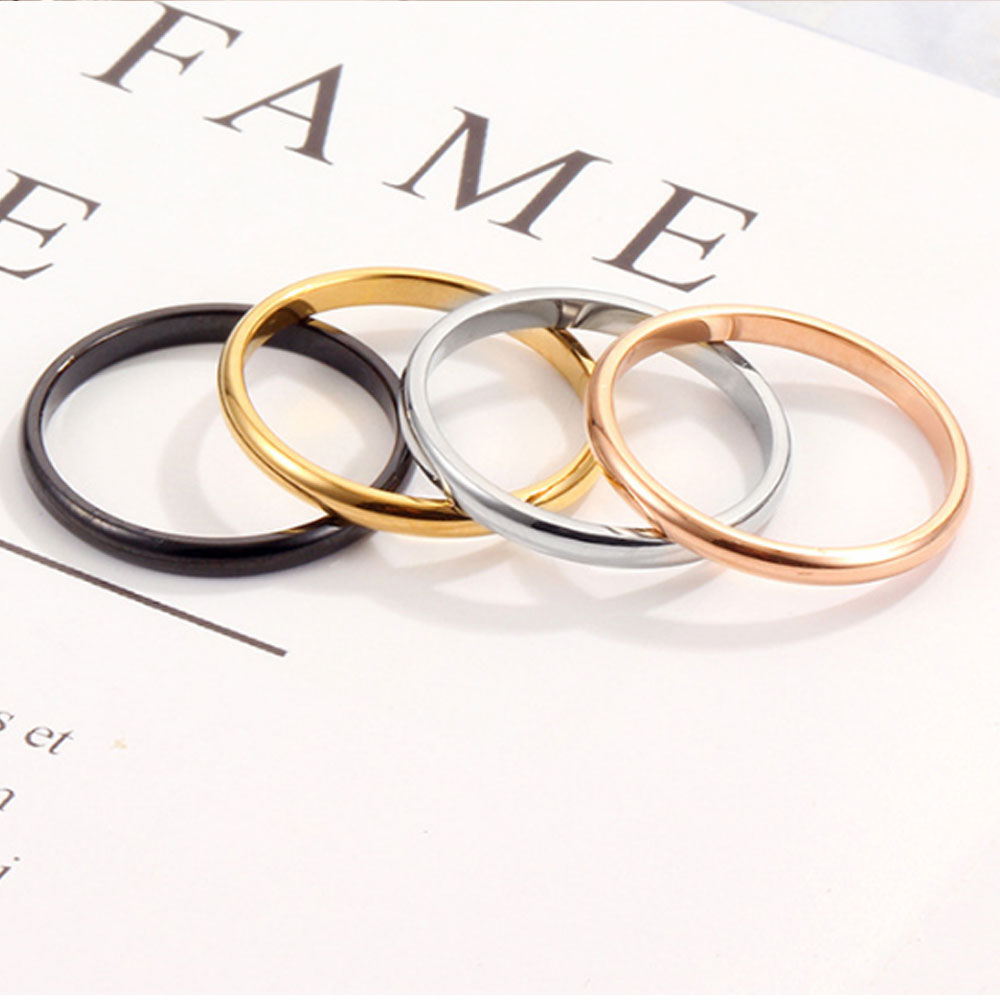 wholesale narrow 2mm wide women men wedding black silver gold rose gold stainless steel stack rings jewelry fashion accessories