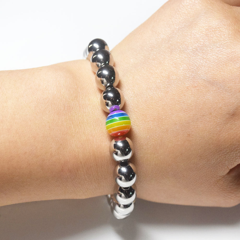 wholesale or custom stainless steel beads with rainbow beads lesbian gay pride lgbt beaded bracelet jewelry handmade