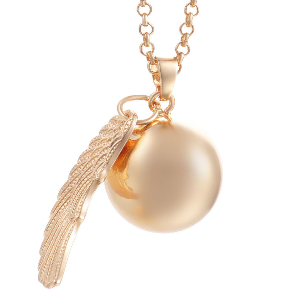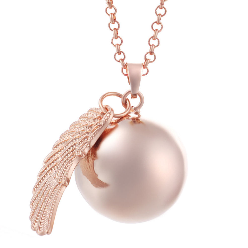 Wholesale Rose gold 25MM Bali Pregnancy Chime Hollow Ball Mexcian Pendant Bola Necklace Jewelry 80cm chain