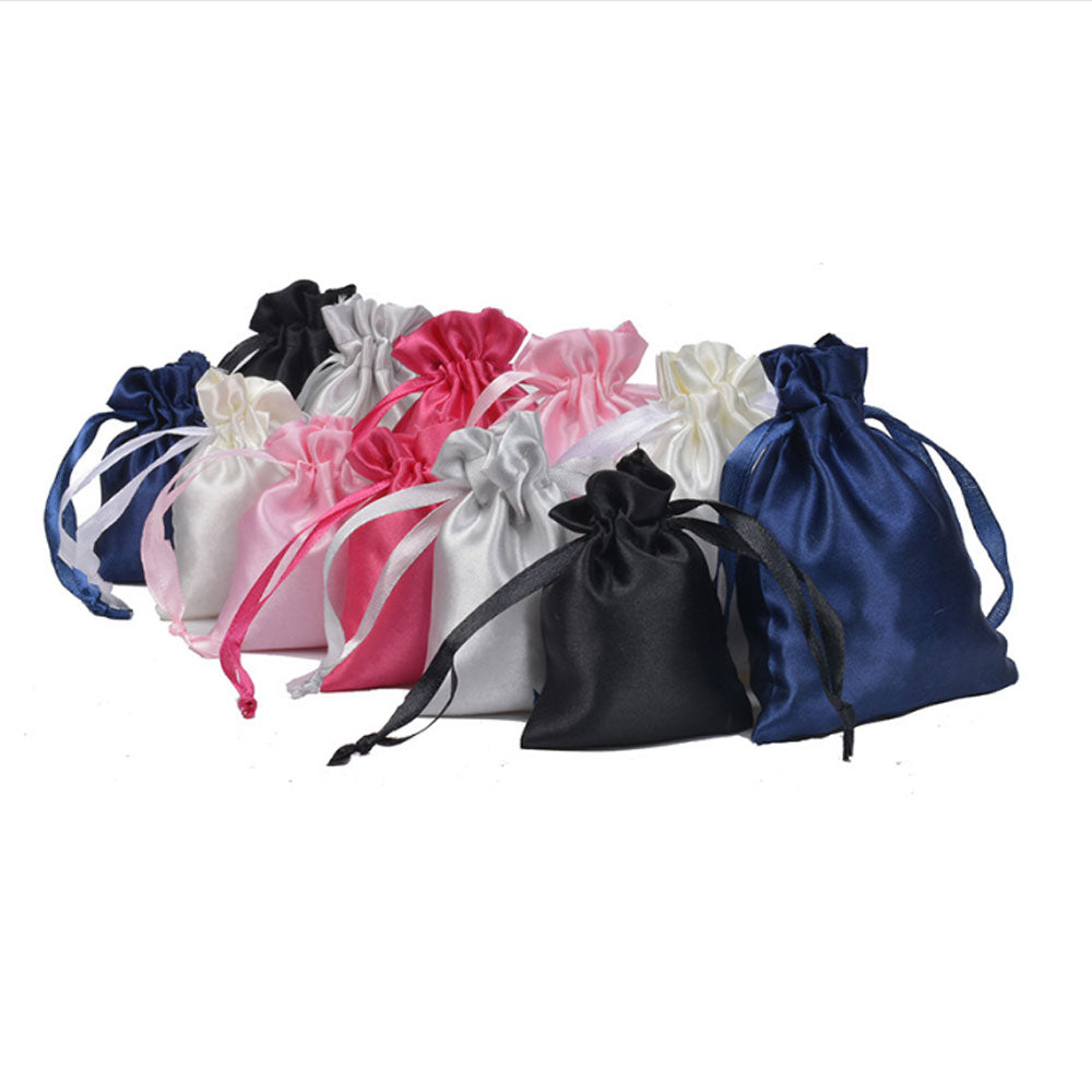 Wholesale Customized Luxury Thick Silk Satin Drawingstring Bundle Dust Wig Hair Extension Jewellry Gift Bag