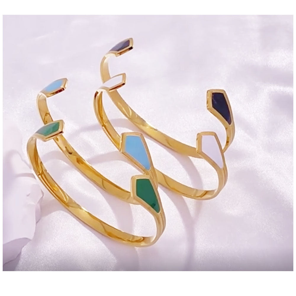 wholesale stainless steel 14k gold plated open cuff enamel colors bangle bracelet China Manufacturer Supplier