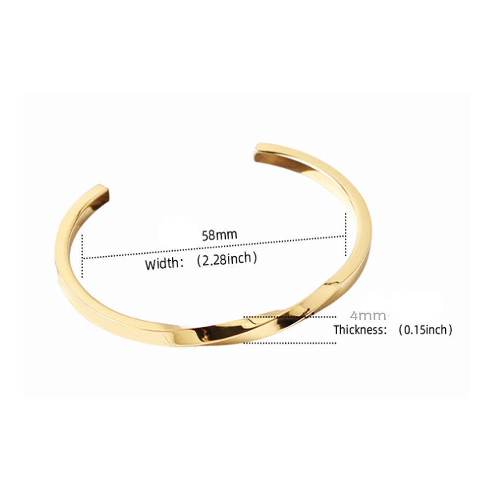 wholesale stainless steel 18k gold plated twist cuff 4mm wide bangle bracelet unisex China Manufacturer Supplier