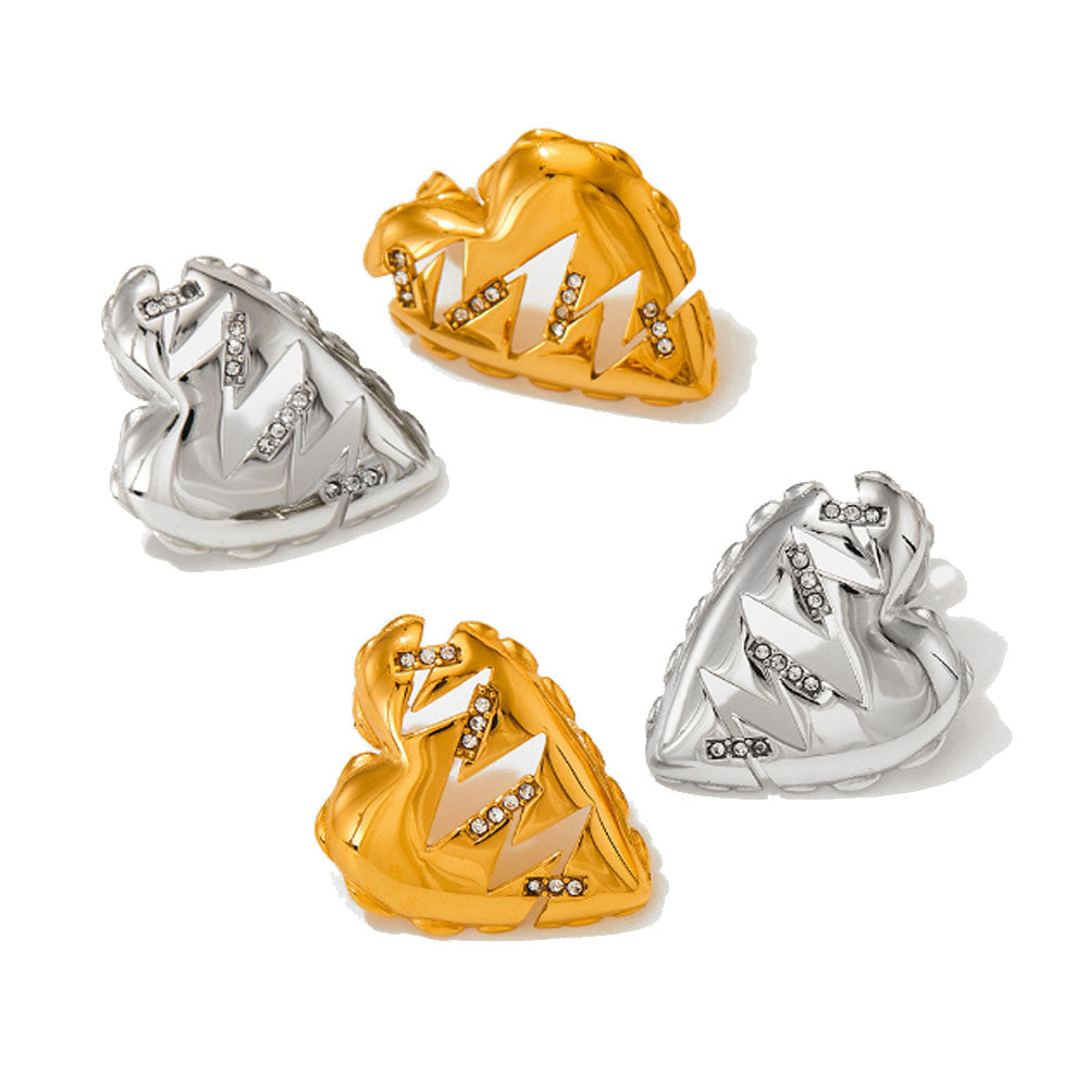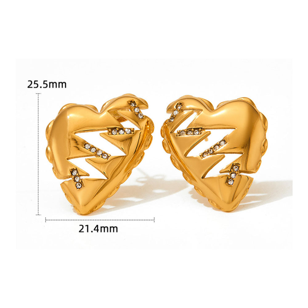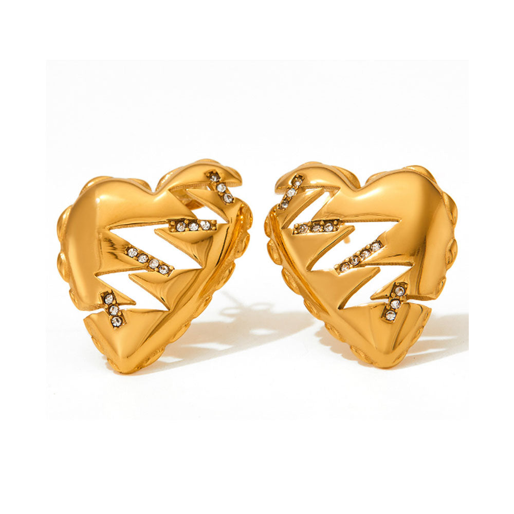 wholesale stainless steel gold plated 14k 25mm heart zircon beads stud earring women China manufacturer factory supplier