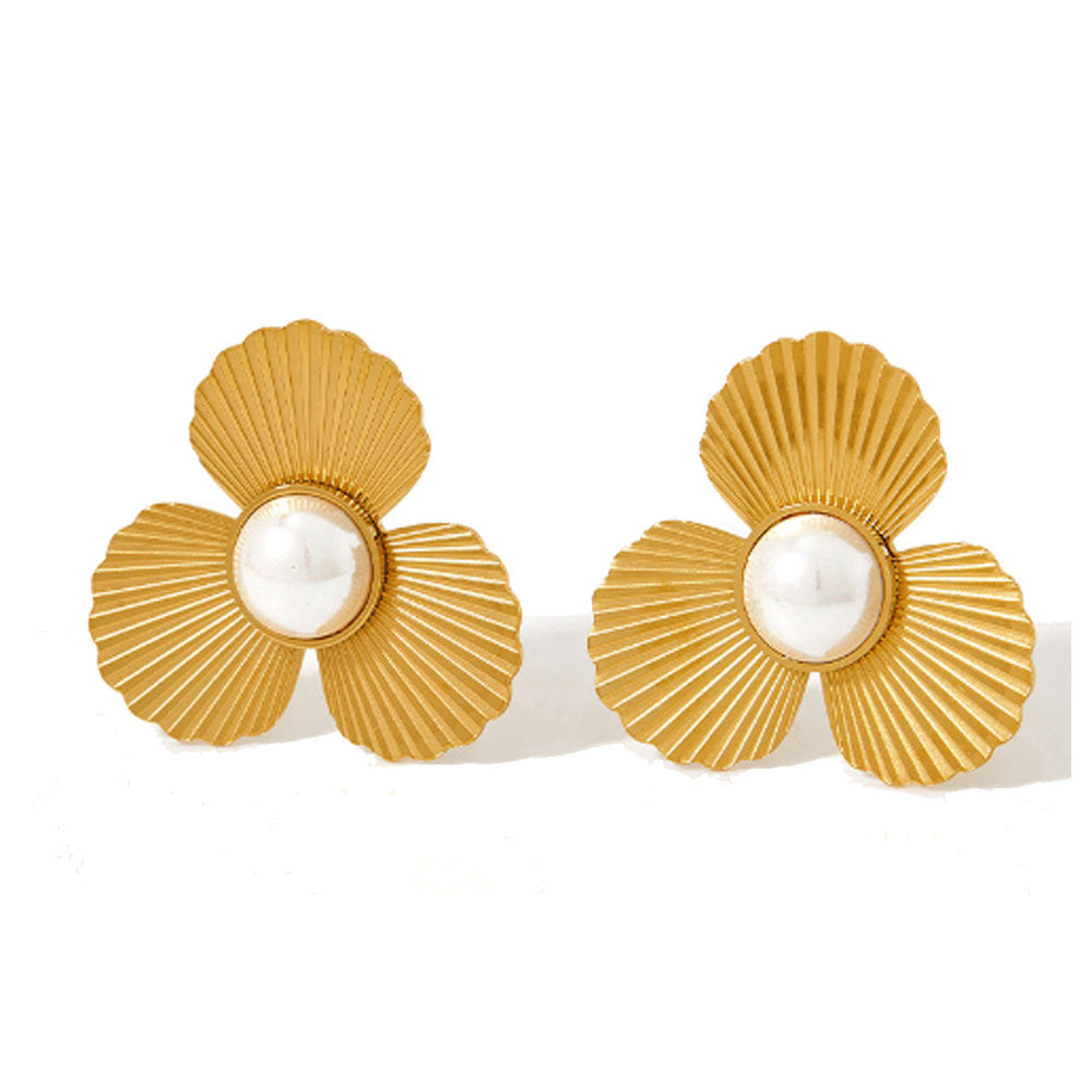 wholesale stainless steel gold plated 14k flower imitation pearl bead stud earring women China manufacturer factory supplier