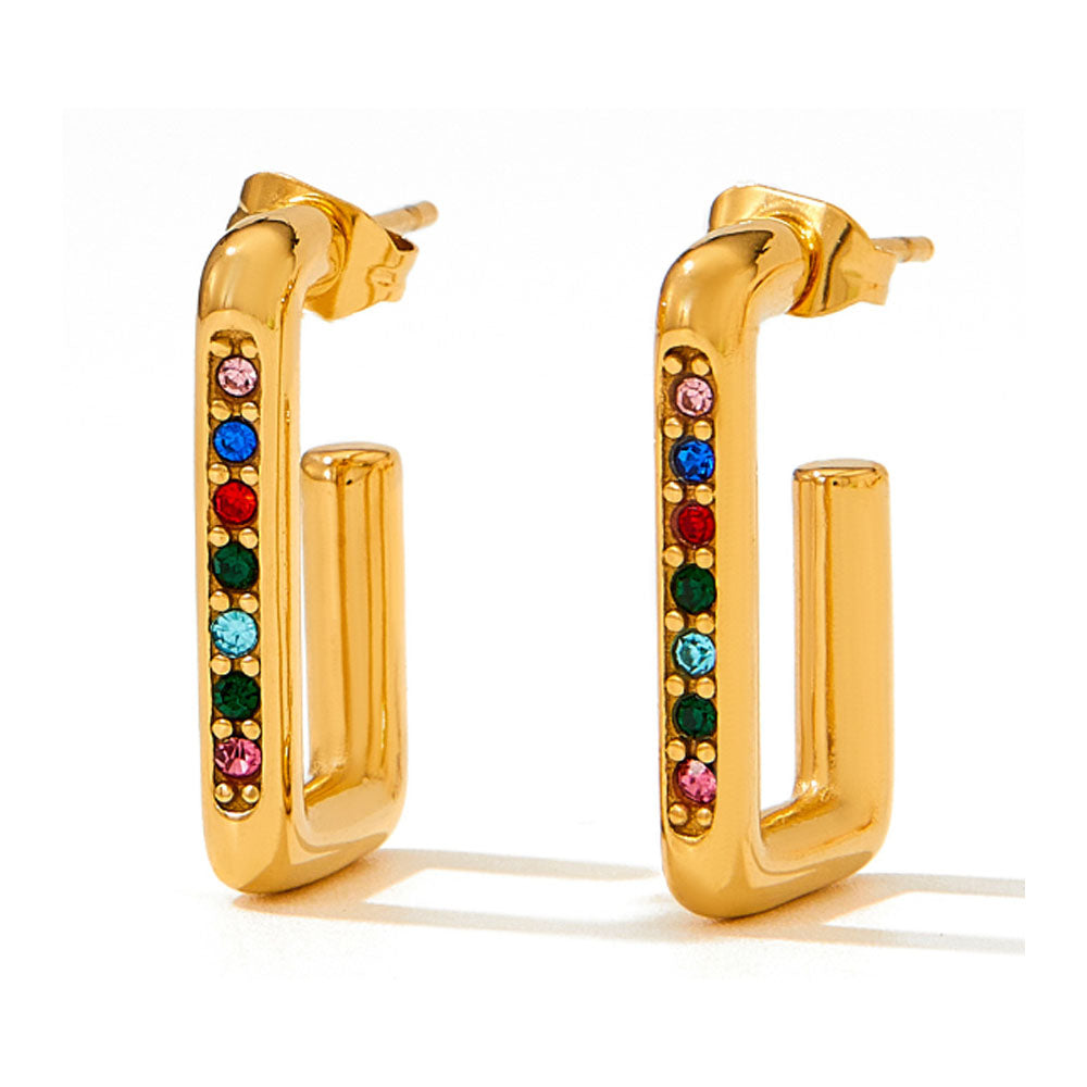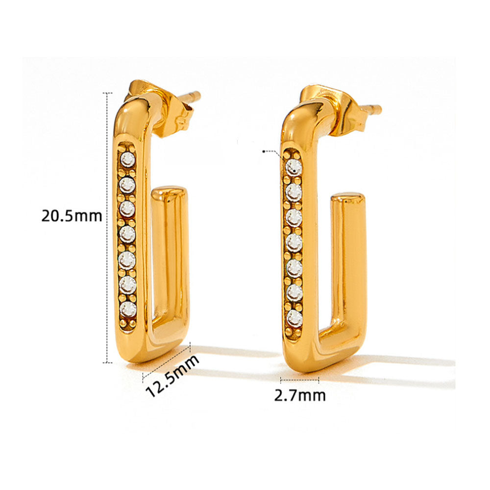 wholesale stainless steel gold plated 14k rectangle open dangle earring zircon beads women China manufacturer factory supplier