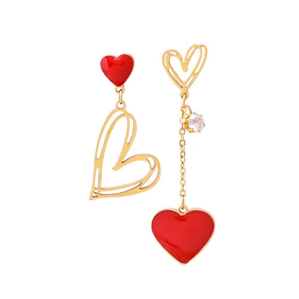 wholesale stainless steel gold plated zircon charm red heart dangle asymmetric earring women China manufacturer factory supplier