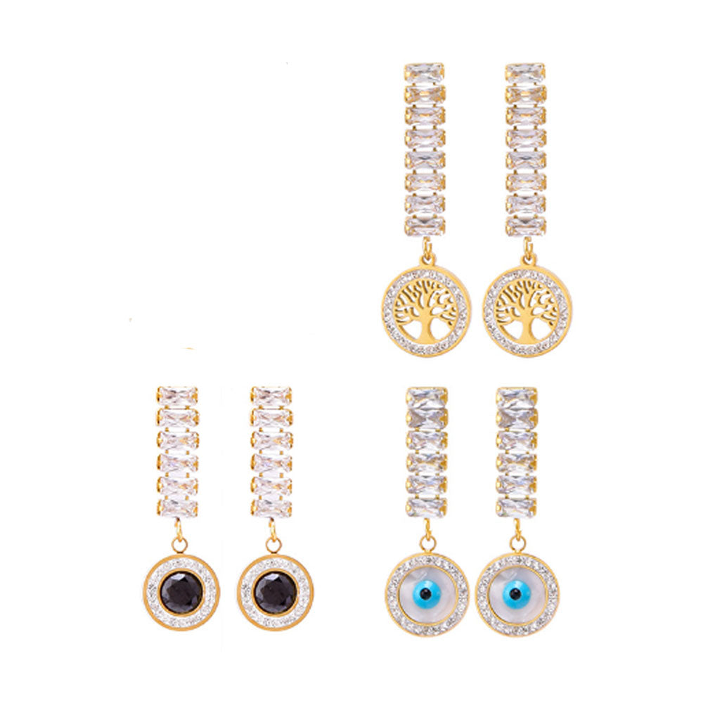 wholesale stainless steel gold plated zircon charm tree of life evil eyes earring women China manufacturer factory supplier