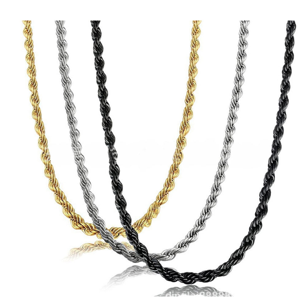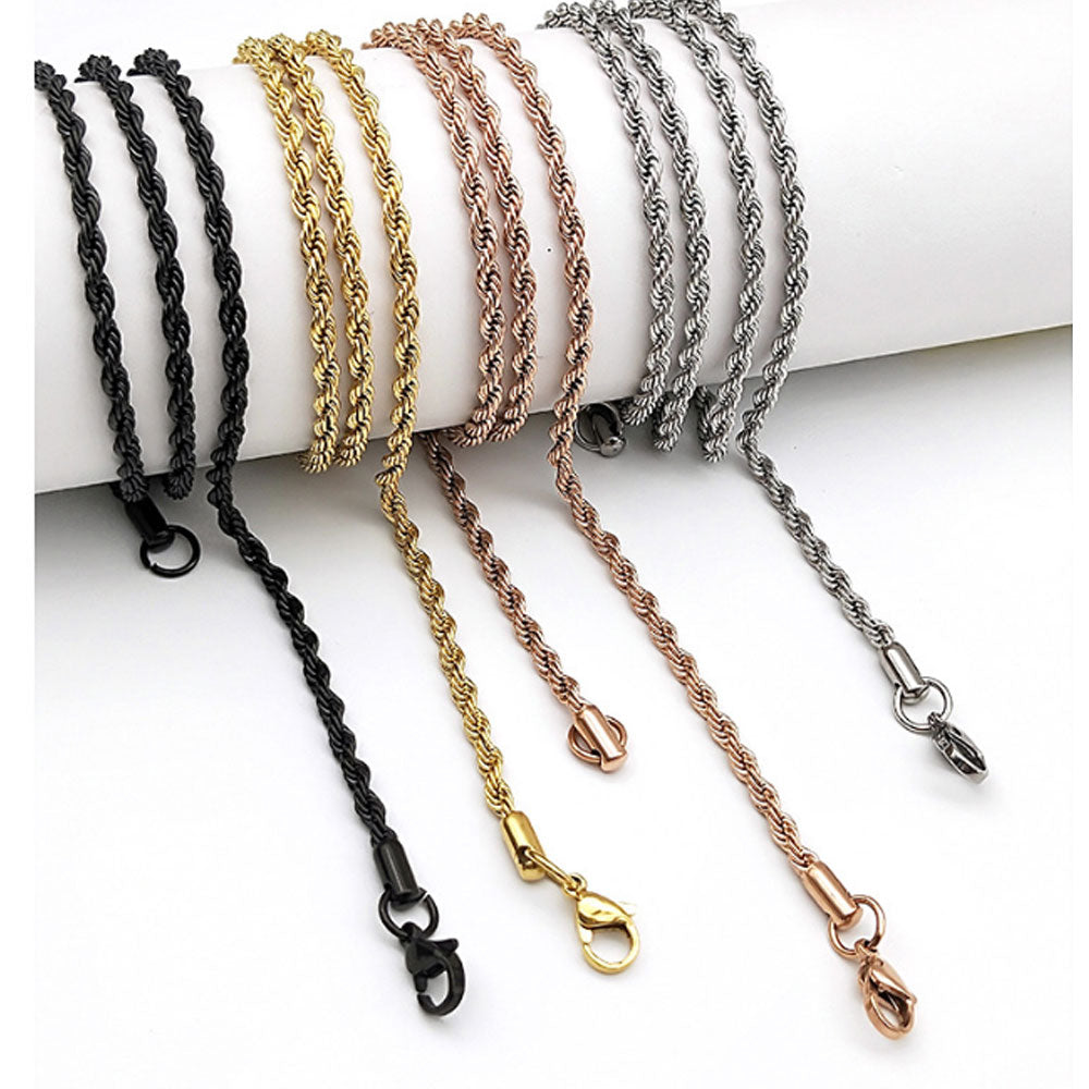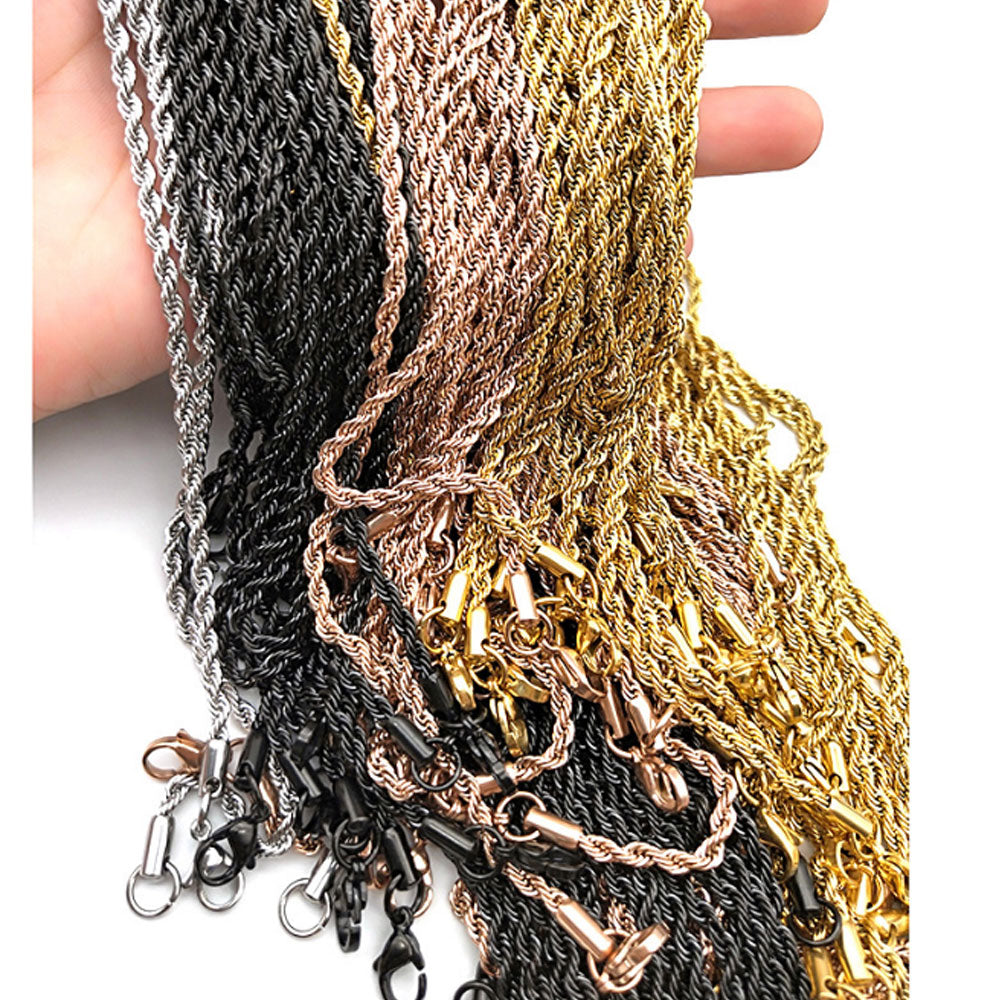 wholesale stainless steel gold silver black and silver twist twisted chain necklace or for pendant 3mm thick full lengths