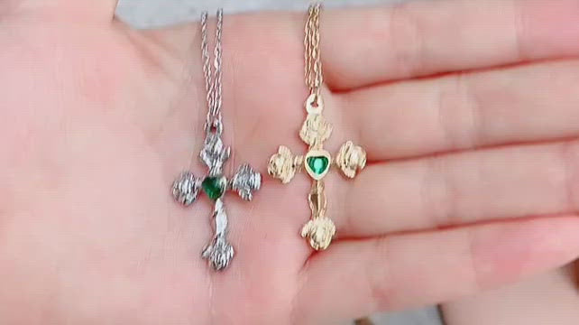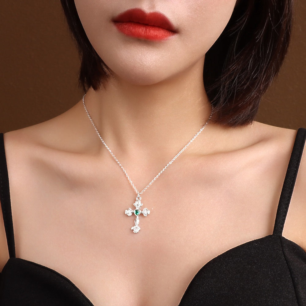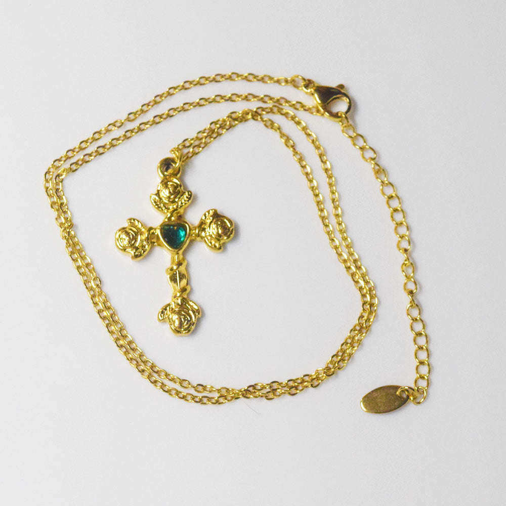 wholesale stainless steel rose flower cross charm cubic zircon zirconua emerald pendant chain necklace for women