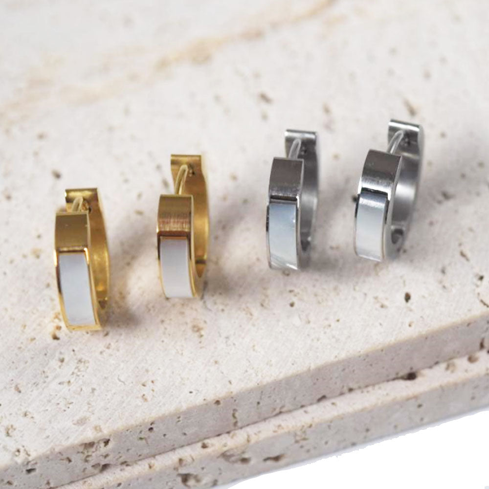 wholesale stainless steel shell inlay half hoop 4x12mm gold earring unisex for women men China manufacturer factory supplier