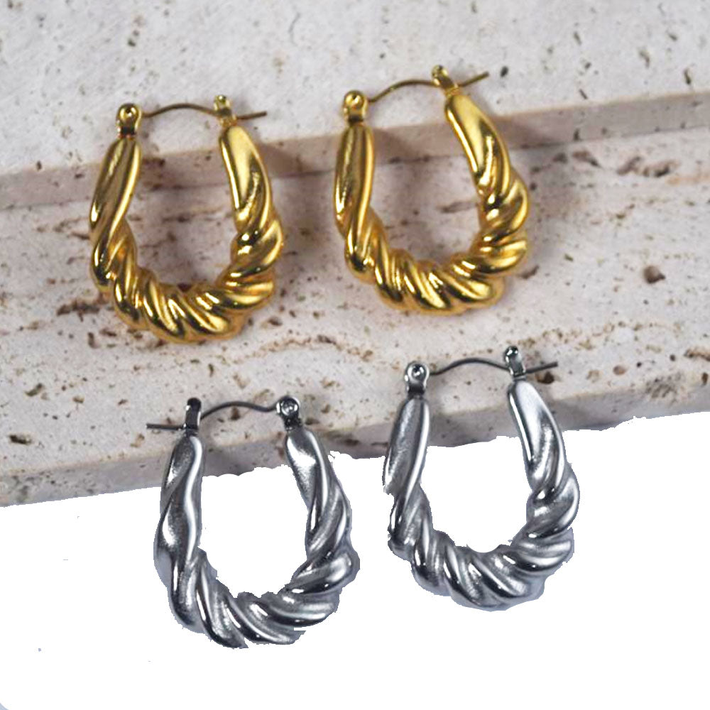 wholesale stainless steel twist hoop huggie earring gold plated earrings jewelry for women China manufacturer factory supplier