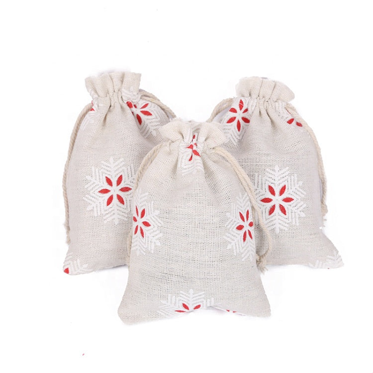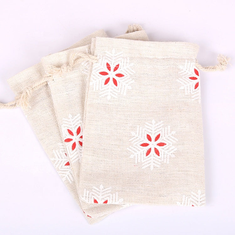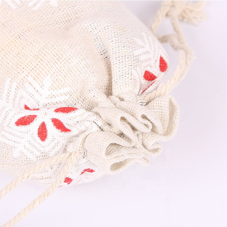 Wholesale wedding party gift holiday bunch pocket candy snowflake cotton linen jewelry pouch jute sack drawstring hemp bag