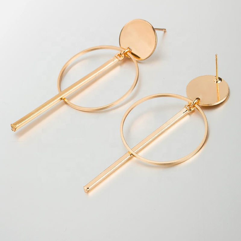 Wholesale Women Korea geometric long earrings gold plated hoop bar pendant tassel earring jewelry boho