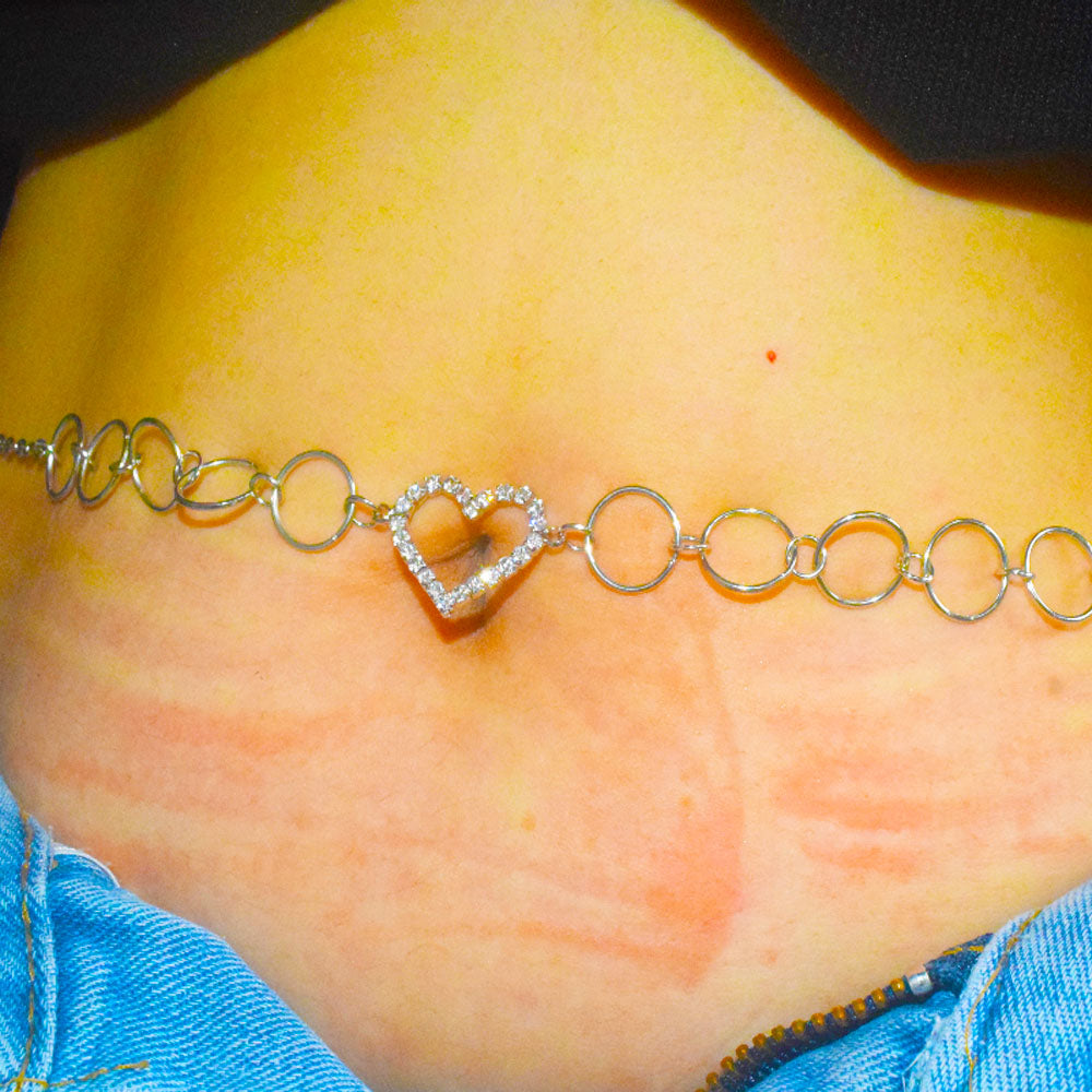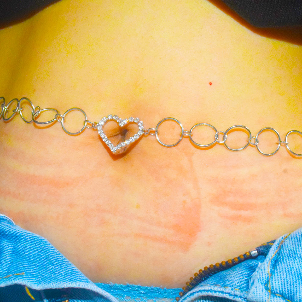 women body sexy shorts bikini metal alloy heart charm rhinestone beads belt belly waist chain 75+10cm body jewelry