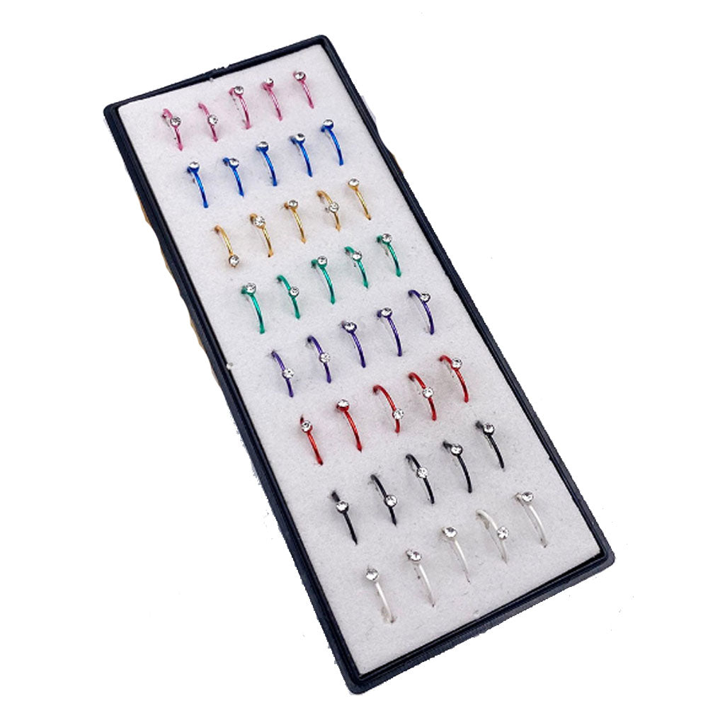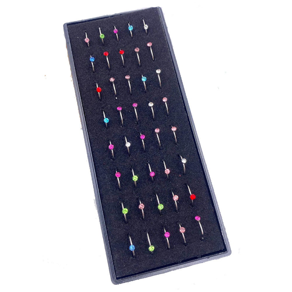 women stainless Steel 8mm inner diameter 0.5mm thick 40pcs pack face nose ring hoop with zircon 1.8mm charm bead 1.8mm jewelry
