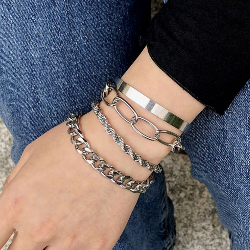women's brass alloy multi chunky cuban chain twisted bracelet & cuff bangles set jewelry
