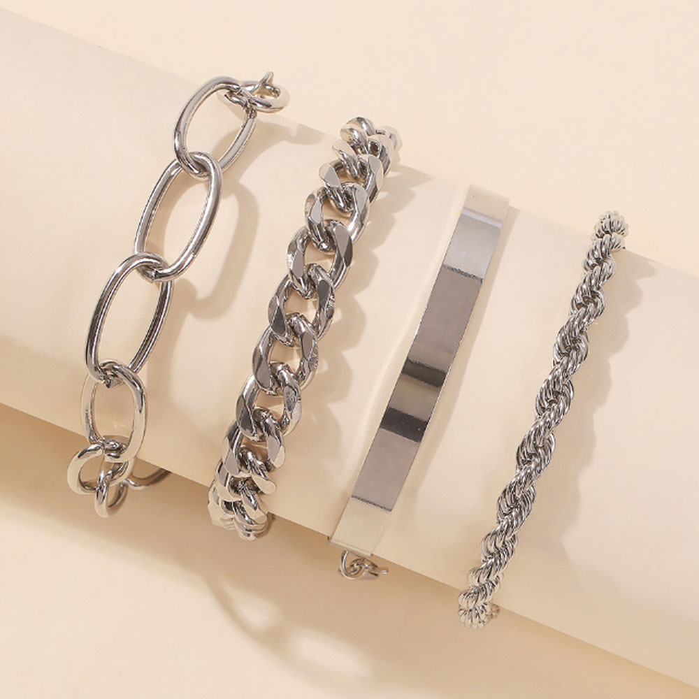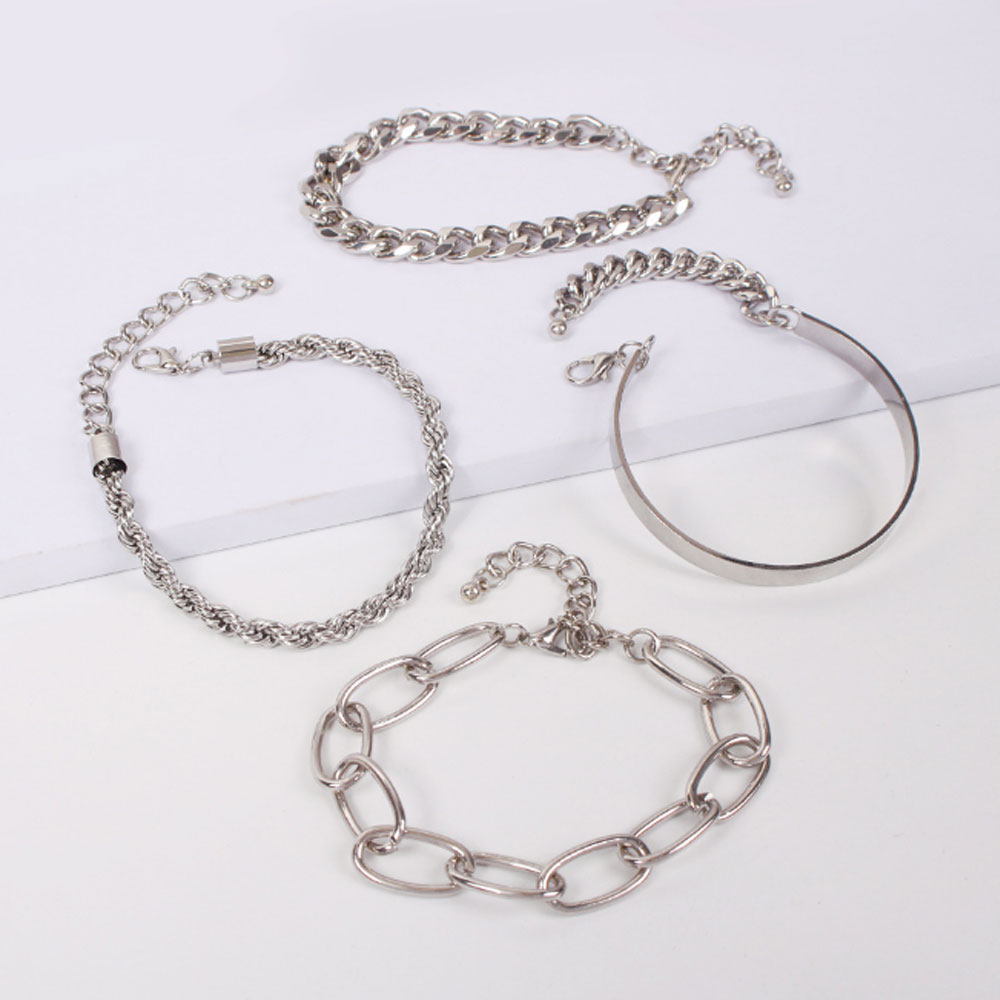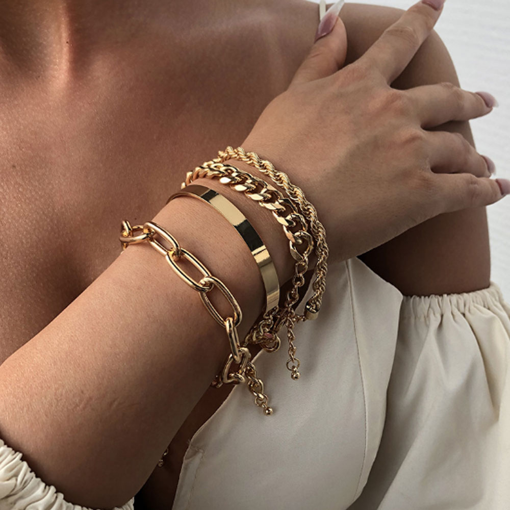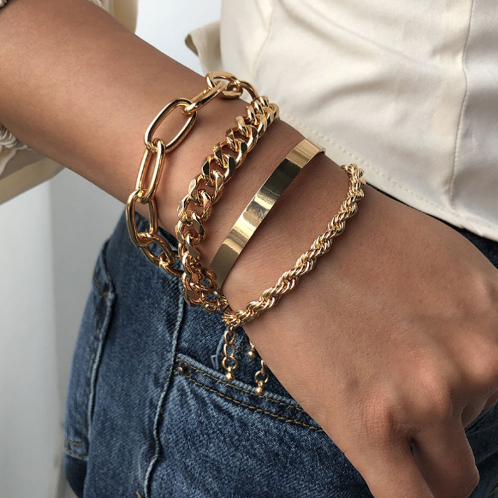 women's kinds of chain chunky cuban twised bracelet & cuff bangles set jewelry