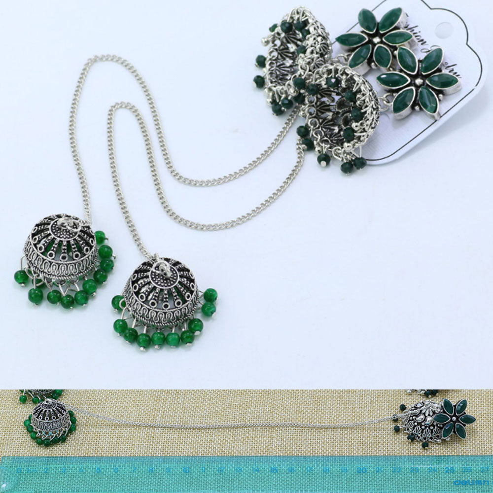 womens ladies fashion alloy green enameled jhumka pendant dangle drop earrings jewelry