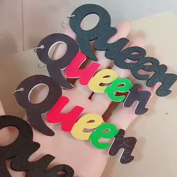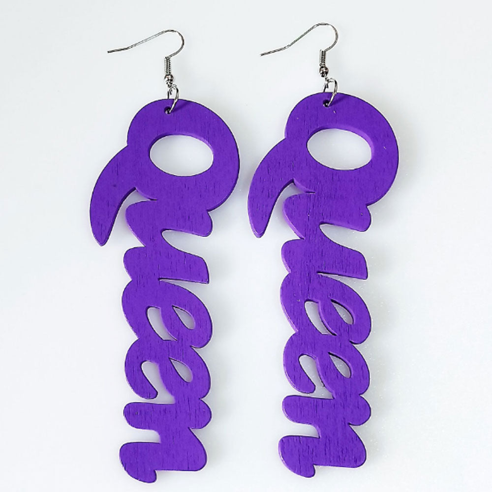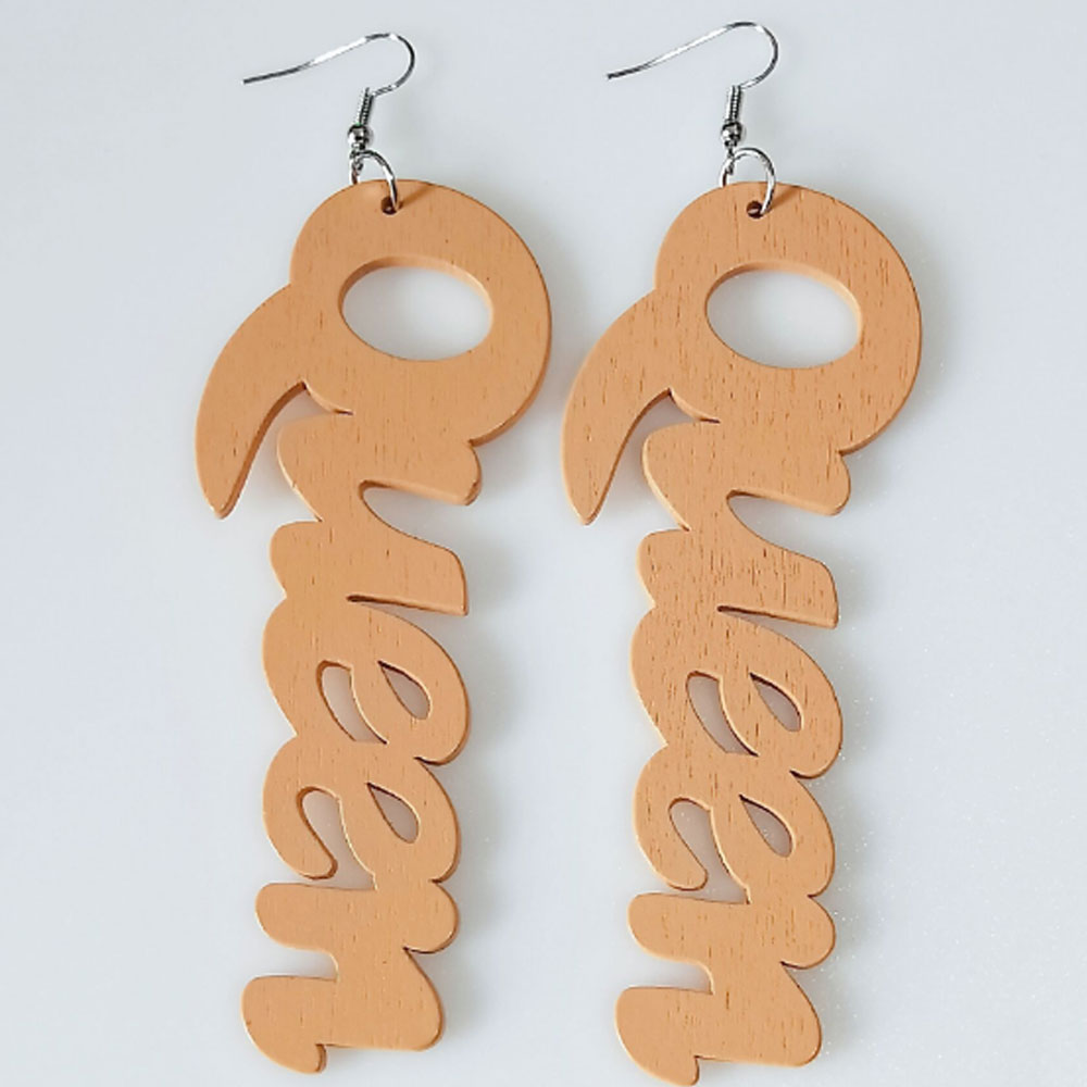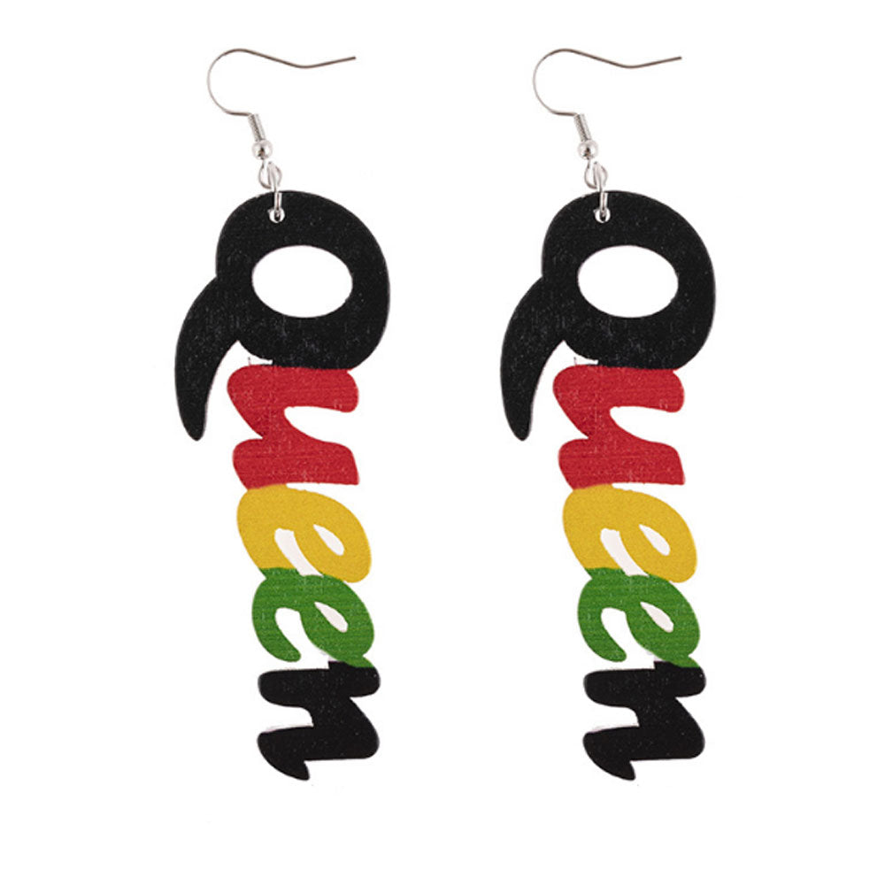 Wood letter charm Africa black queen earrings women