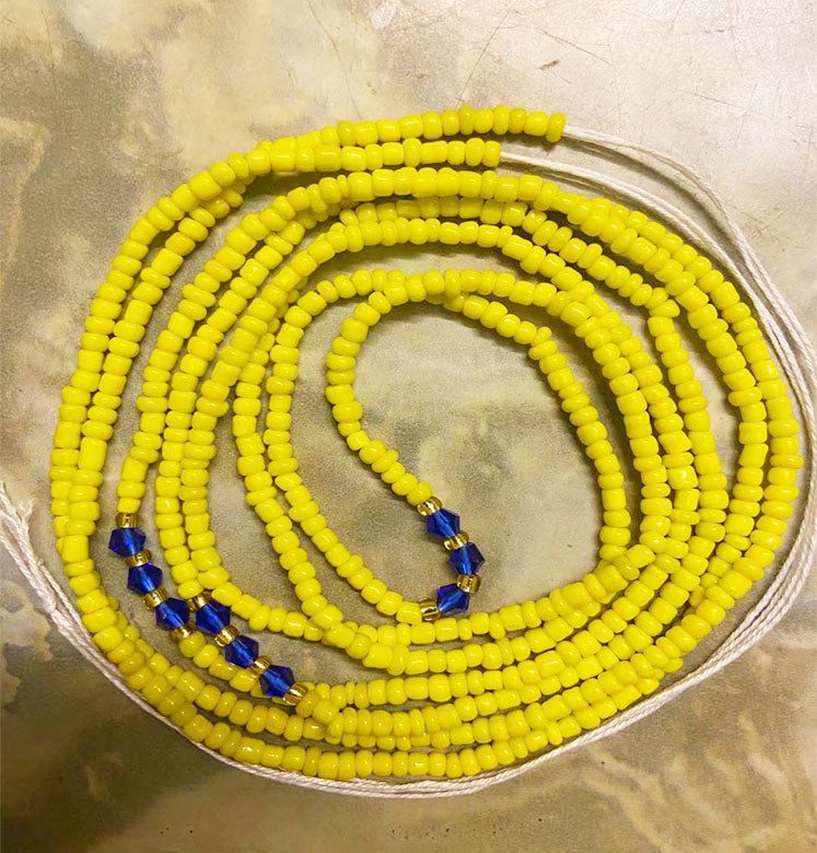 yellow glass seed beads blue crystal bead tie on waist beads belly body chain with clasp double cotton string for ladies